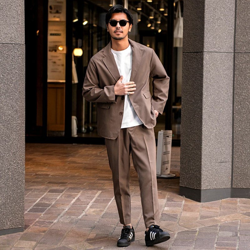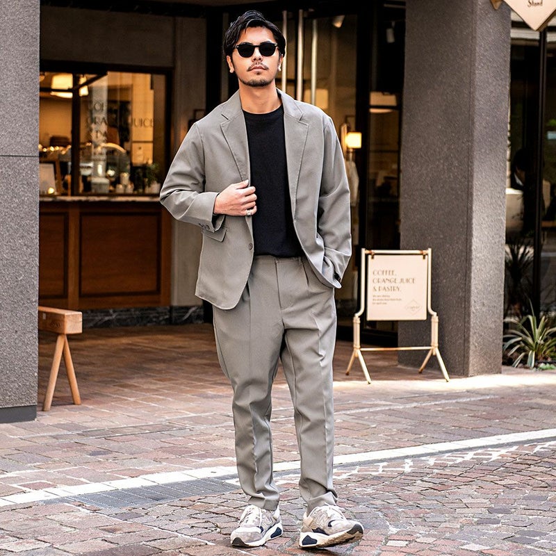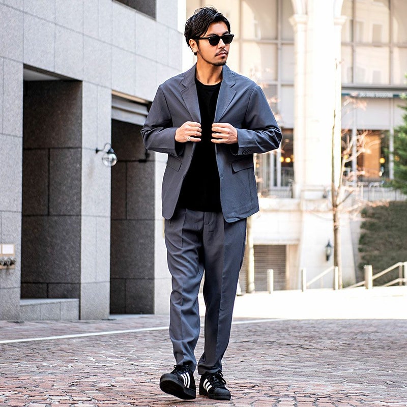 セットアップで着れば、フォーマルなビジネススタイルやドレスアップコーデに。