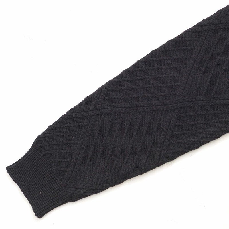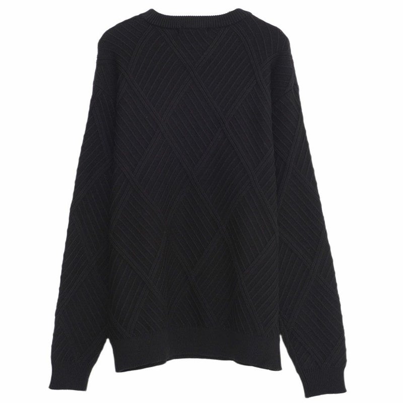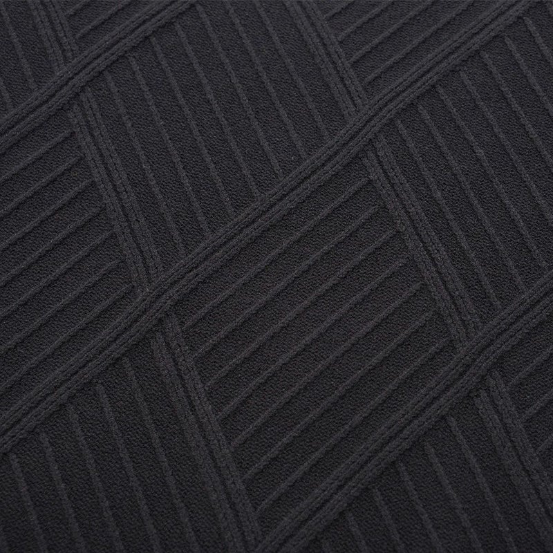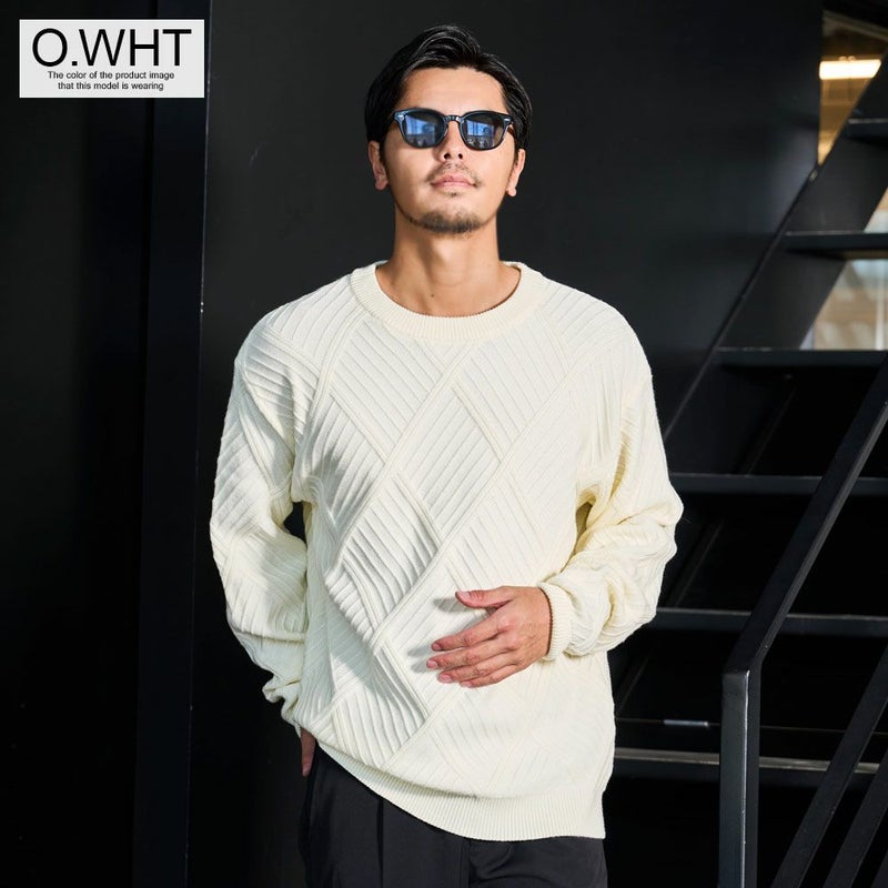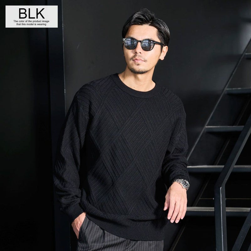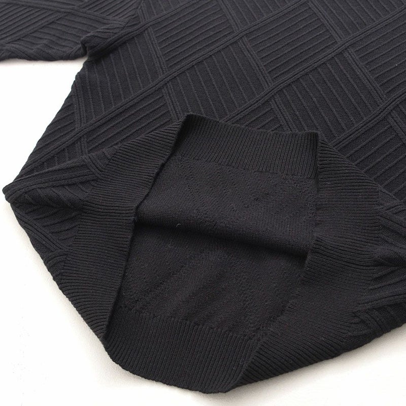凹凸あるジャガード編みで表現された幾何学柄は、主張しすぎない“無地見え”のデザイン。