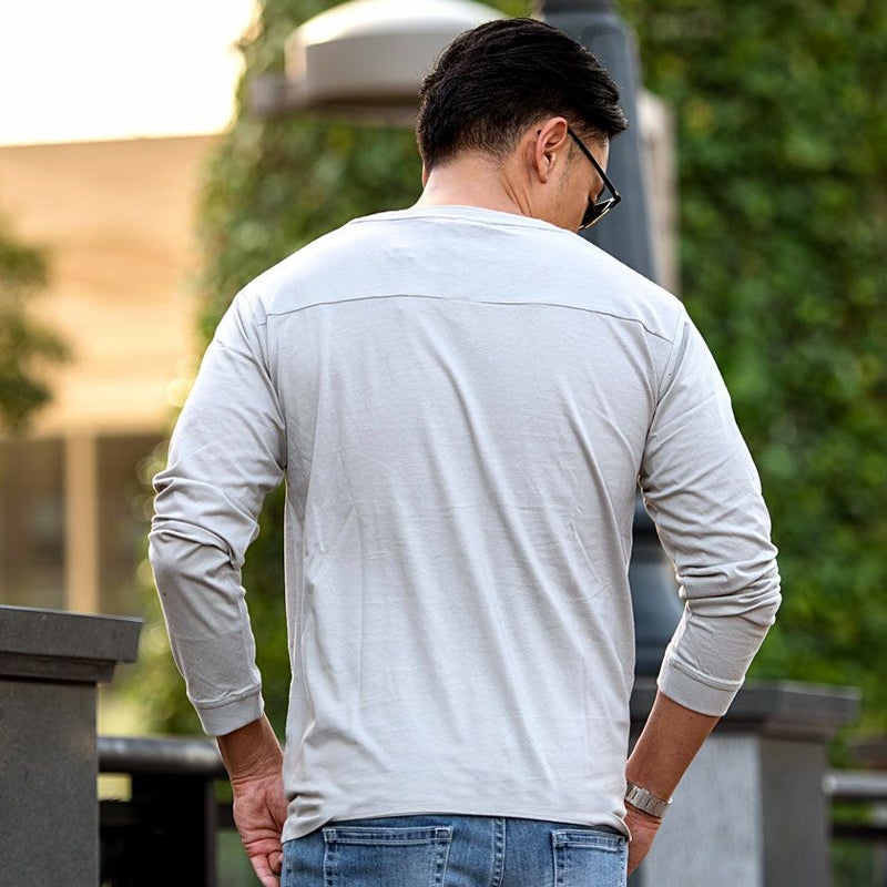 程よく光沢感のある、薄手な生地感でシルクのような滑らかな肌触りを楽しめるロンTEE。