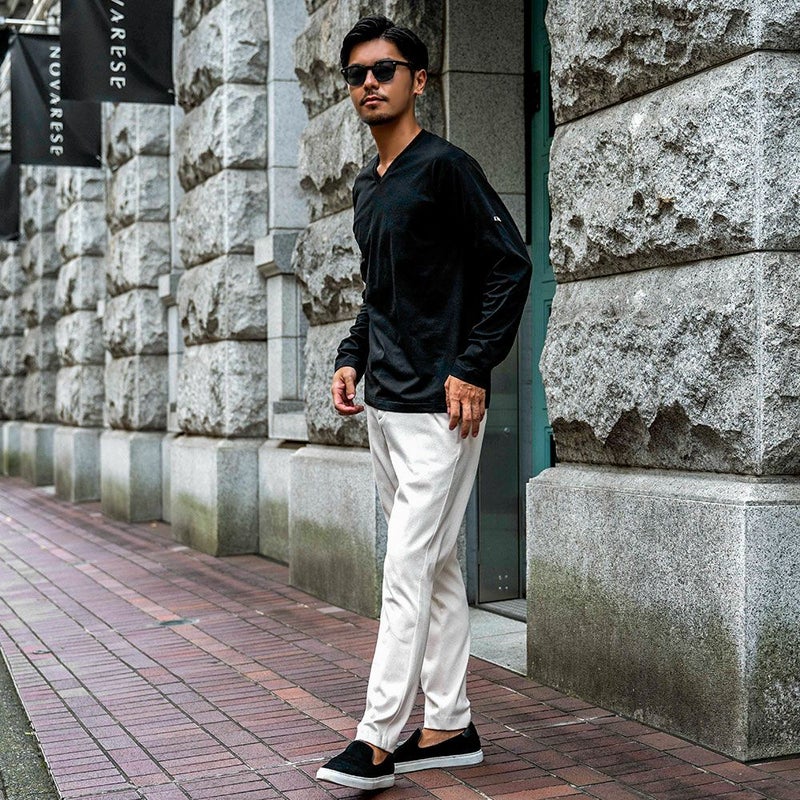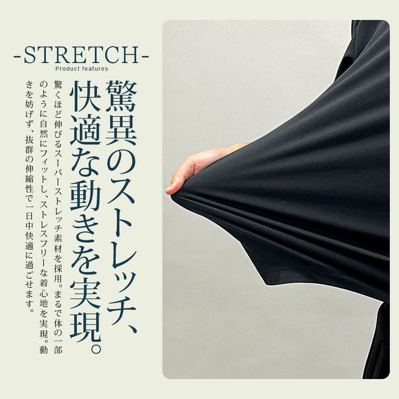 しっかりとした生地感ながら、驚くほど伸びるストレッチ素材で、動きやすさと快適さを両立。
