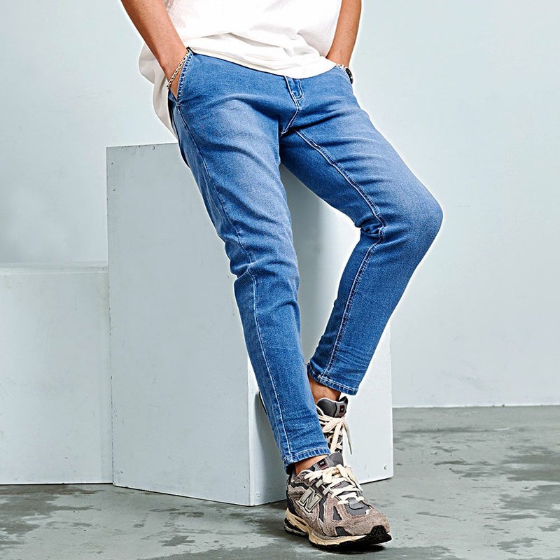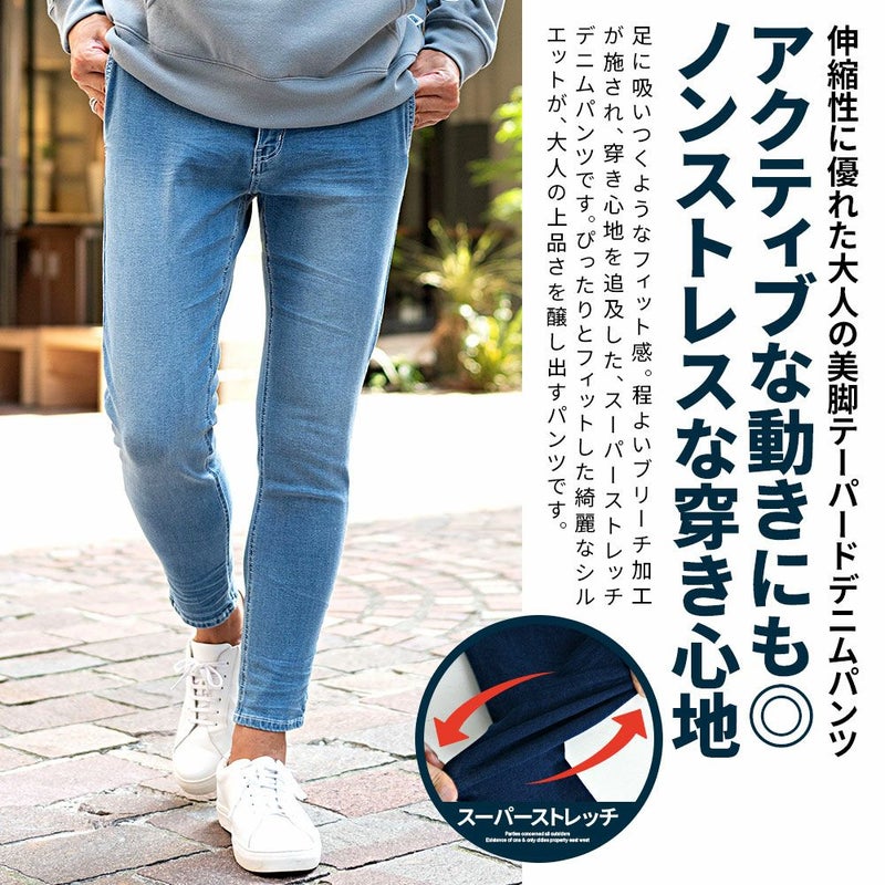 驚くほど良く伸びるスーパーストレッチ素材を採用したデニムパンツ。