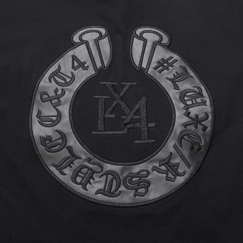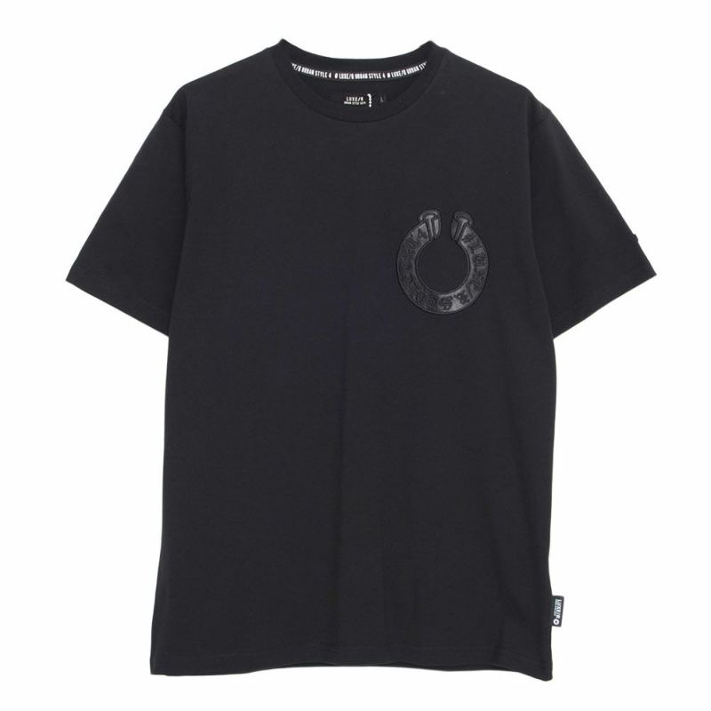 胸元とバックに施した馬蹄形(ホースシュー)モチーフのPU貼り付け刺繍がインパクト抜群の半袖Tシャツ。