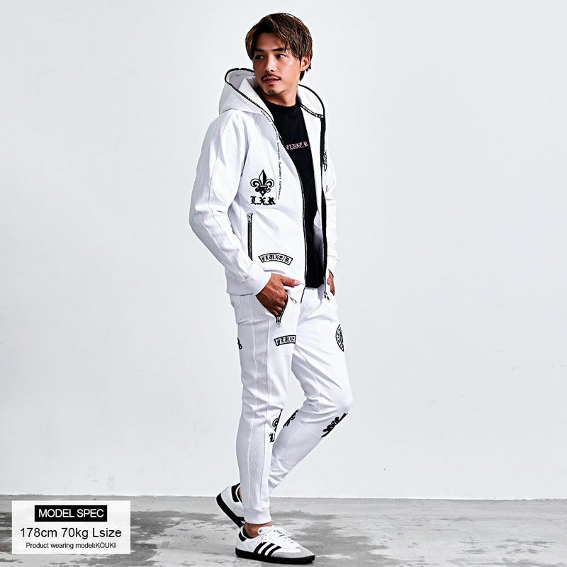 同デザインのパンツと合わせれば、セットアップとしての着用もおすすめです。