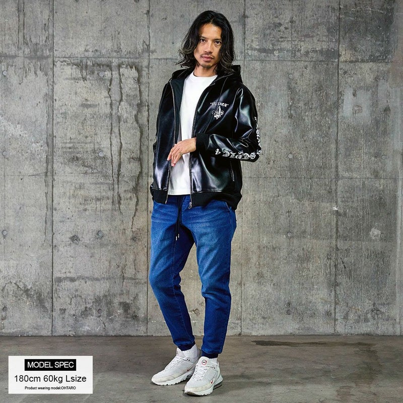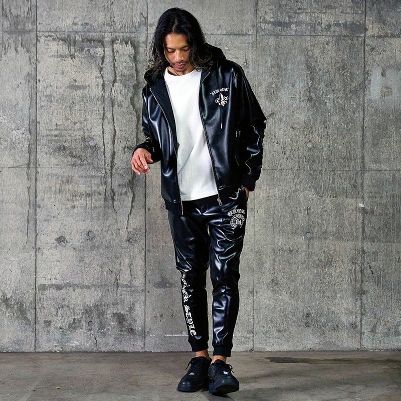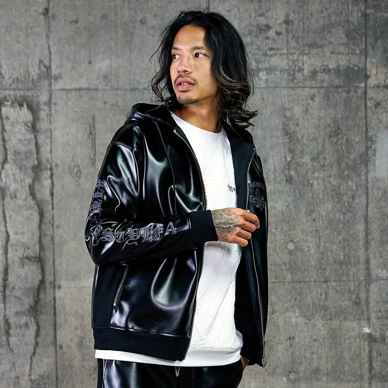 同素材のレザーパンツと合わせれば、統一感のあるセットアップスタイルも楽しめる一着です。