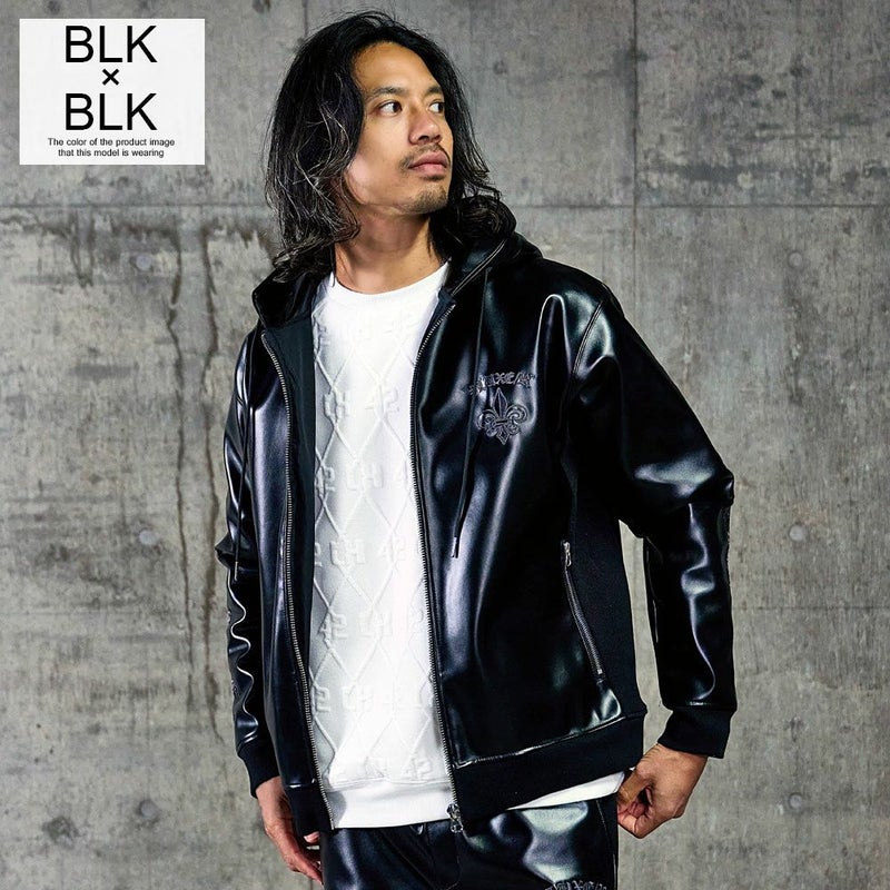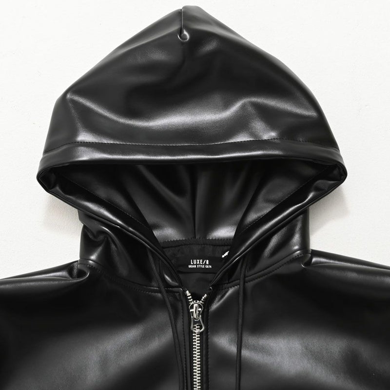 上質な光沢感が魅力のPUレザーを使用した、LUXE/Rらしい存在感抜群のフードジャケット。