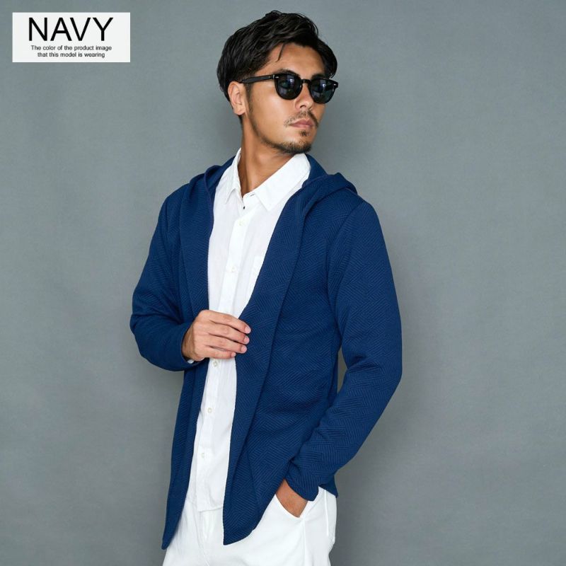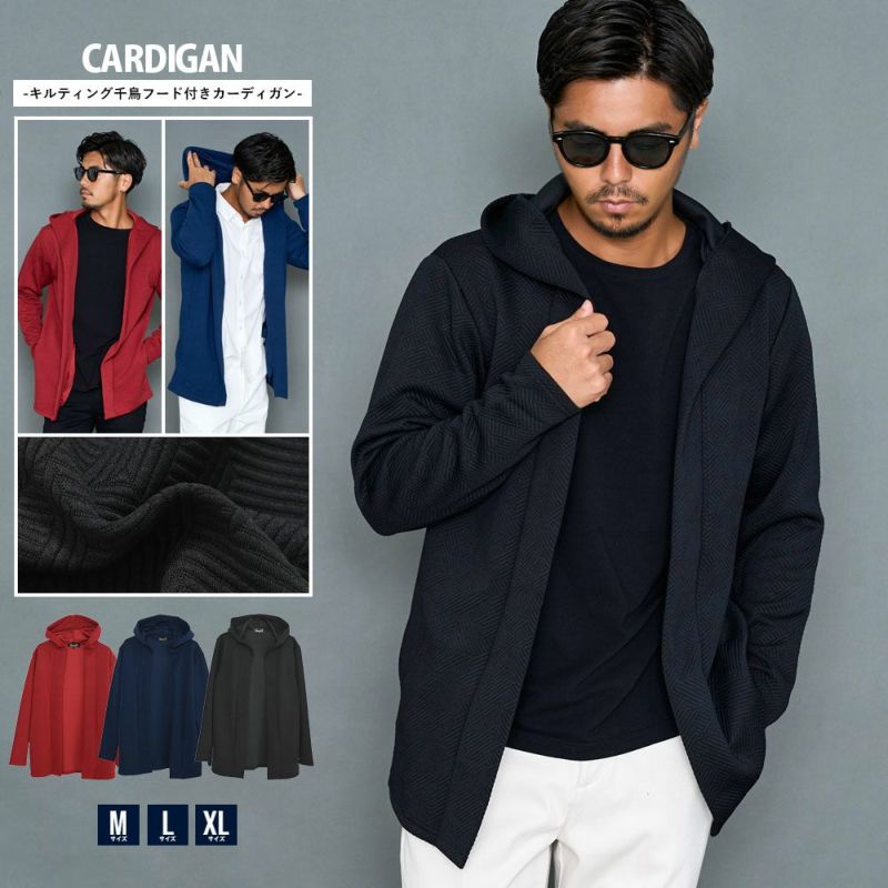 ビターなカジュアルスタイルにぴったりなカーディガン。季節の変わり目に大活躍! 【SALE/セール】CavariA(キャバリア)キルティング千鳥フード付きカーディガン/全3色