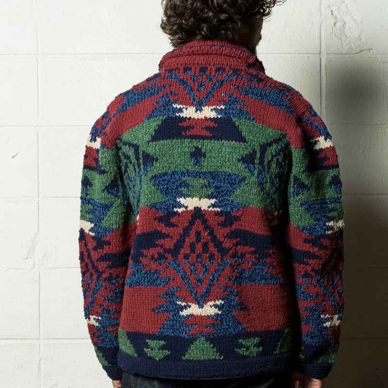 SANTAFEに居住するPUEBLO民族の伝統柄をモチーフに、Wブレストのカーディガンに仕上げました。