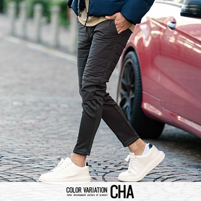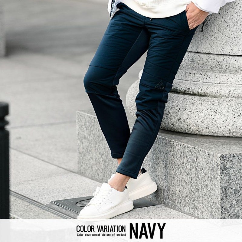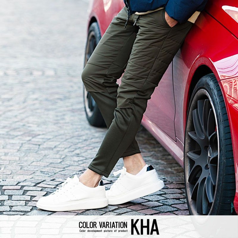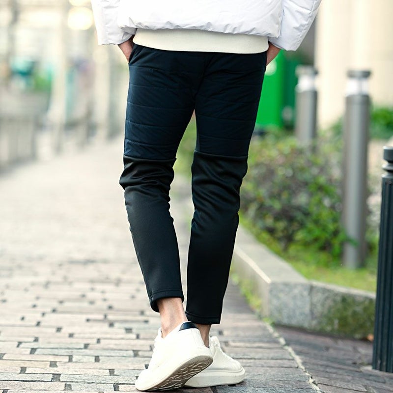腰から腿周りには中綿素材、膝下からは裏起毛素材を使用し動きやすさを保ちながら暖かな穿き心地を実現。