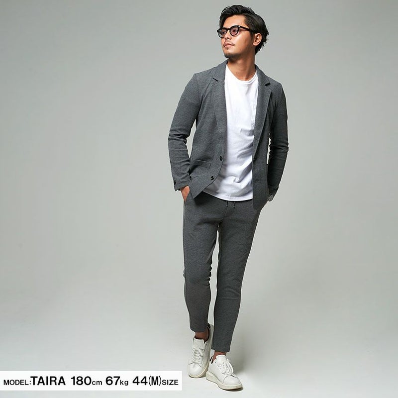 同素材の「テーラードジャケット」を合わせてセットアップでの着用も可能です。