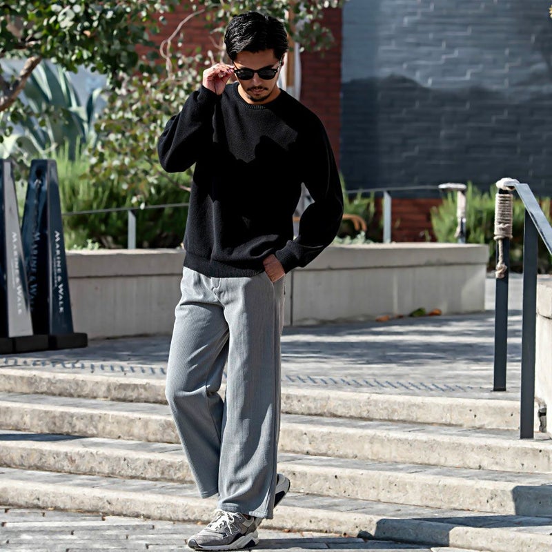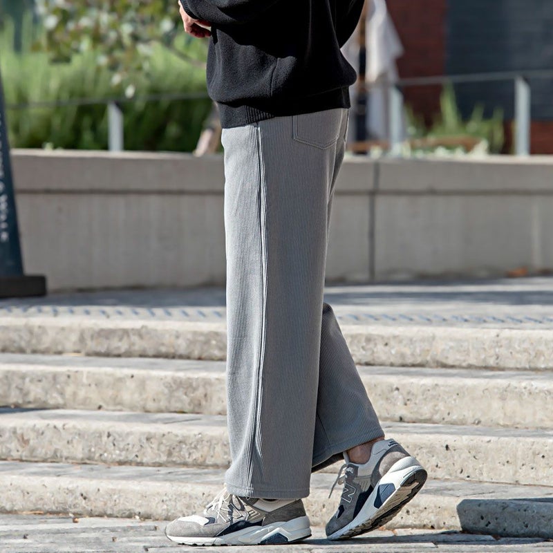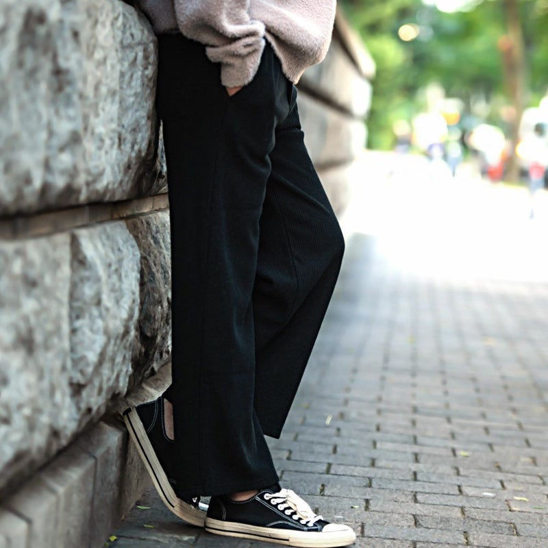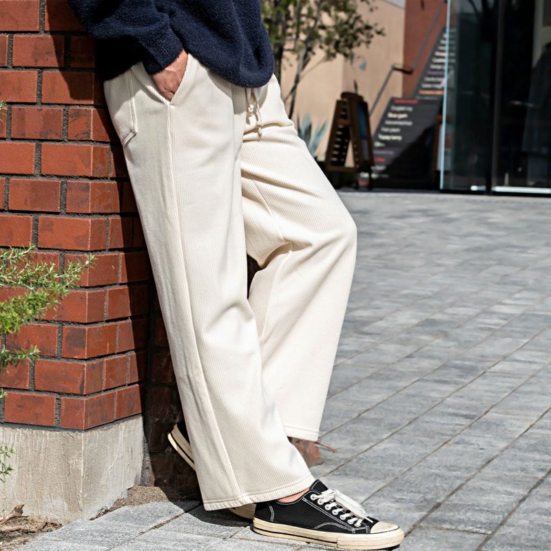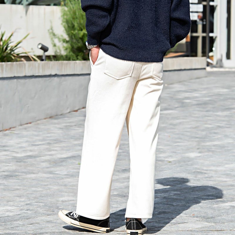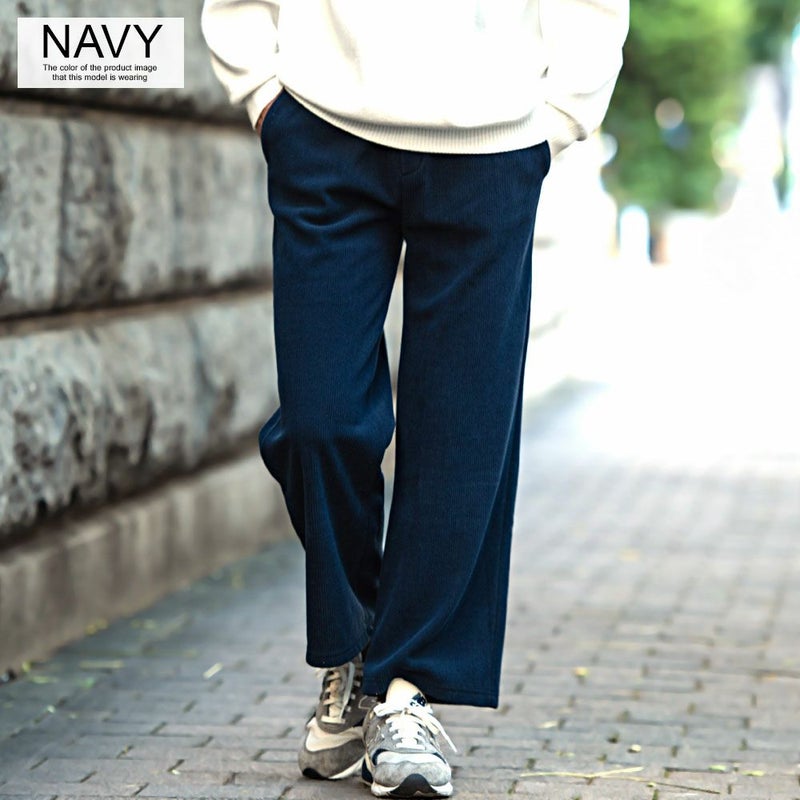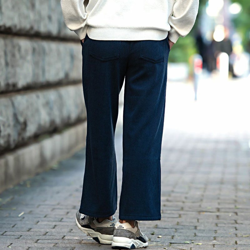 コーデュロイの素材感と広がりすぎない、ストレートワイドシルエットでスッキリ贅沢ワイドパンツ。
