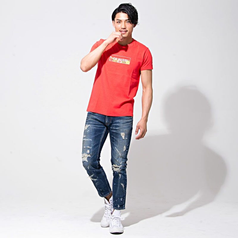 TMTでは初となる9分丈の細身テーパードシルエットでポケット口のレインボーカラーハンドステッチが特徴。