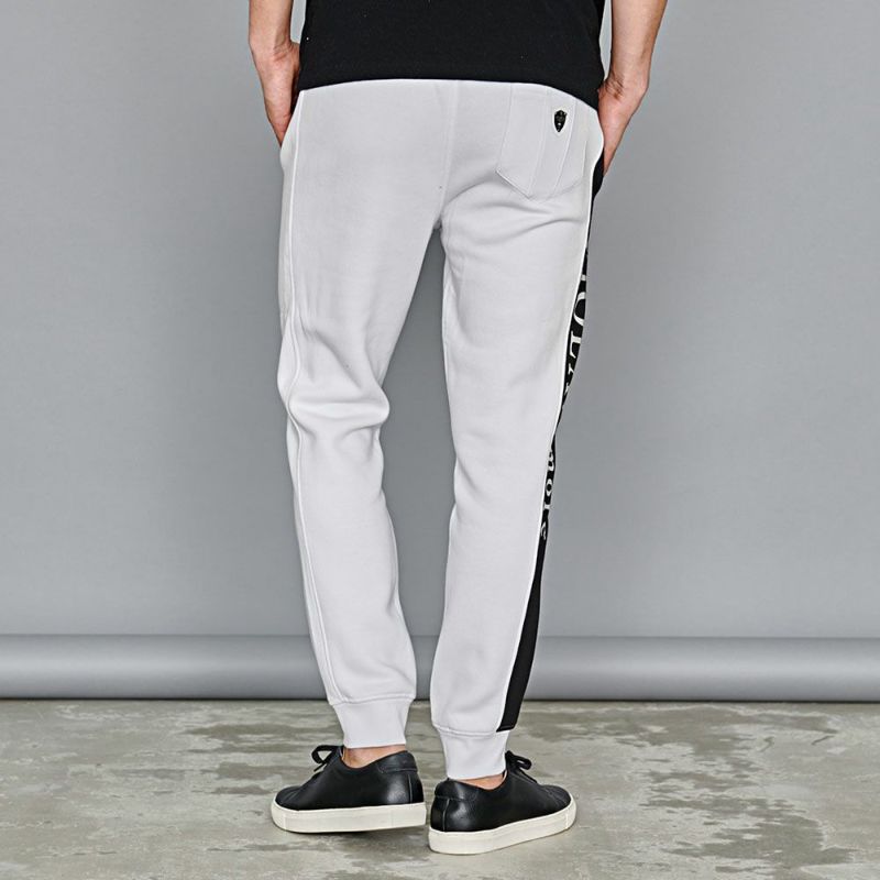 切り替えデザインで伸縮性のあるジャージ素材を使用したジョガーパンツ。