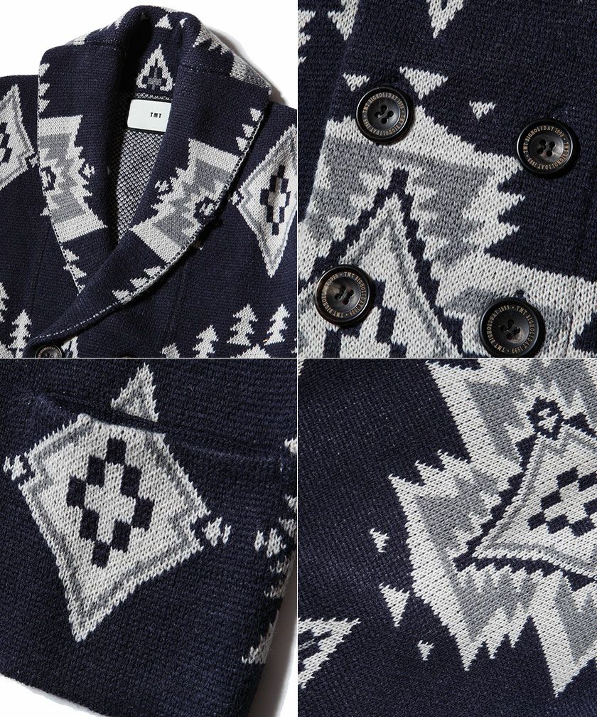 他の画像を見る 送料無料 SALE ビターなカジュアルスタイルにぴったりなカーディガン。季節の変わり目に大活躍! 【SALE/セール】【送料無料】TMT(ティーエムティー)NATIVE JACQUARD KNIT W-BREASTE CARDIGAN/全2色 通常価格 ¥ 28,600 のところ 販売価格 ¥ 14,300 税込 カートに入れる お気に入りに登録する