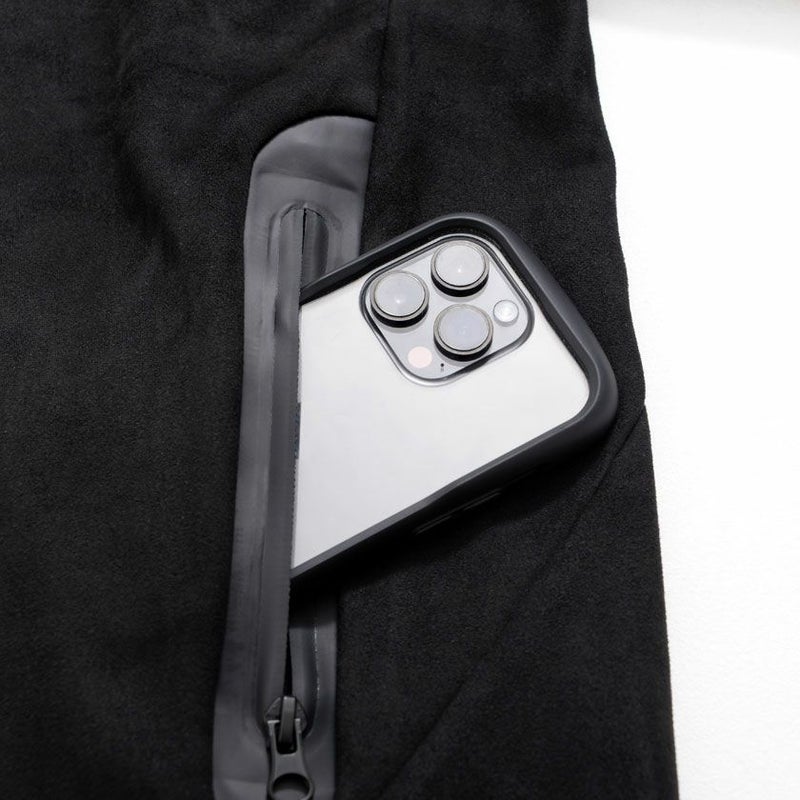 両サイドのポケットは止水ジップでちょっとした小物を入れるのにも便利です。