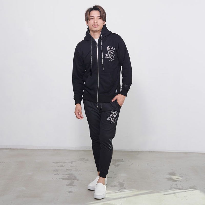 同素材のラインストーンベアZIPパーカーとセットアップでのご着用もオススメ。