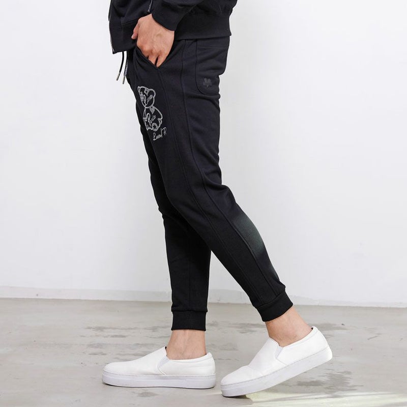 裏起毛を使用した暖かなラインストーンベアパンツ