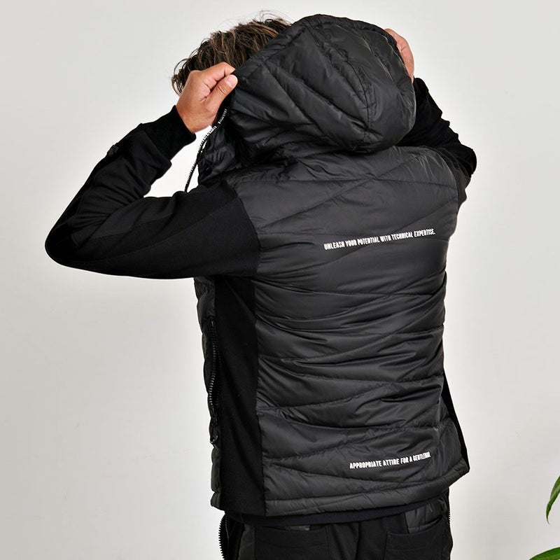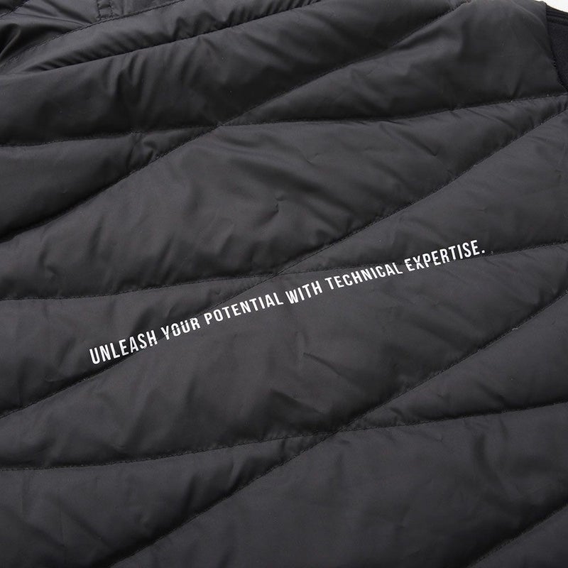 ダウン部分は防風性と耐久性に優れ蒸れにくい高密度生地を採用し、機能性も抜群。