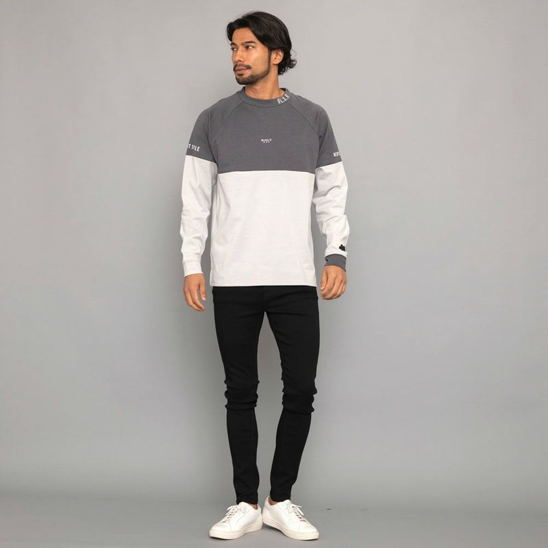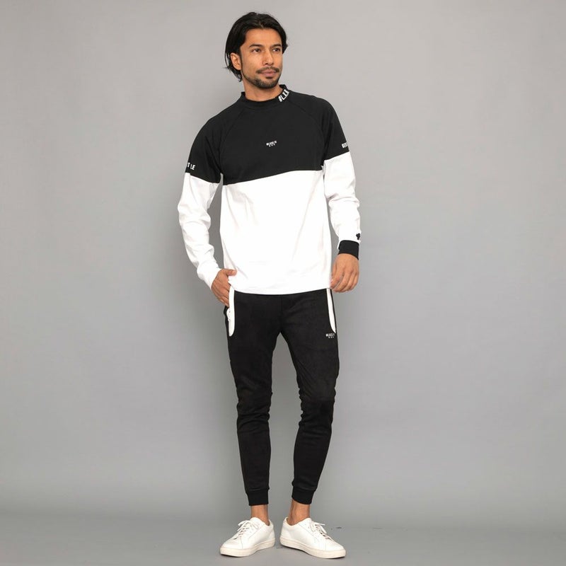 ボディの上下を切り替えたバイカラーデザインが目を惹くモックネックカットソー。