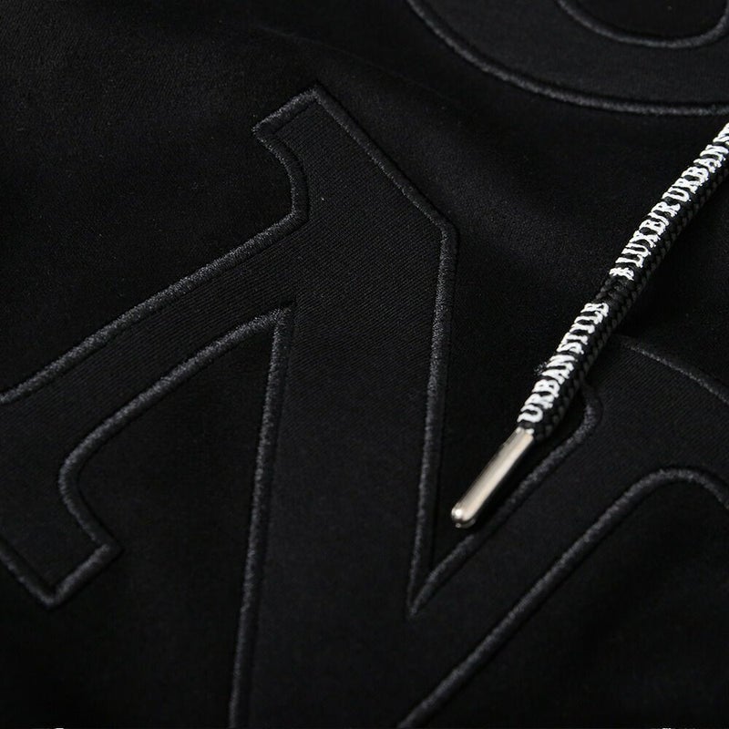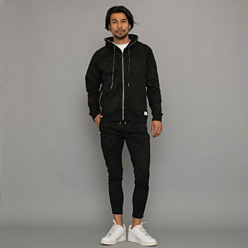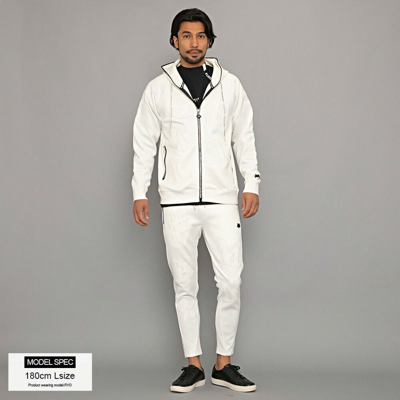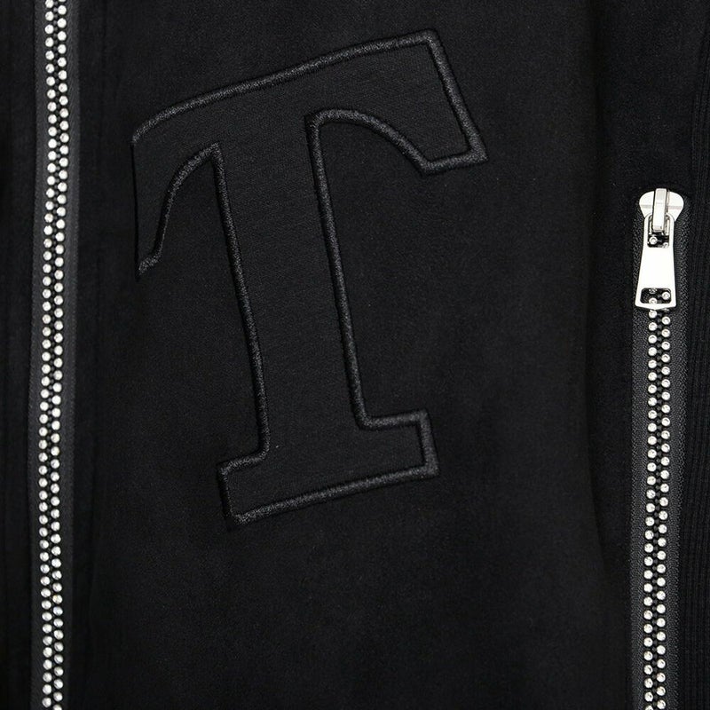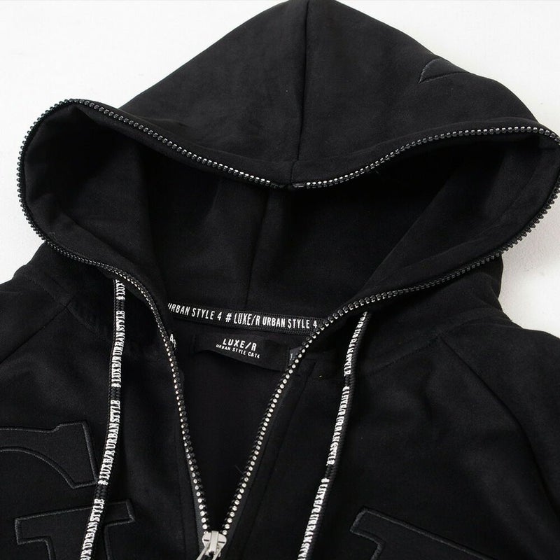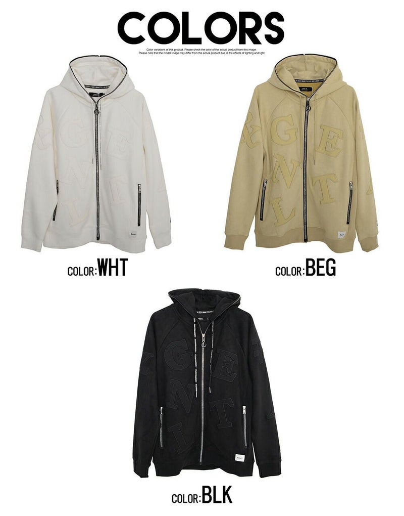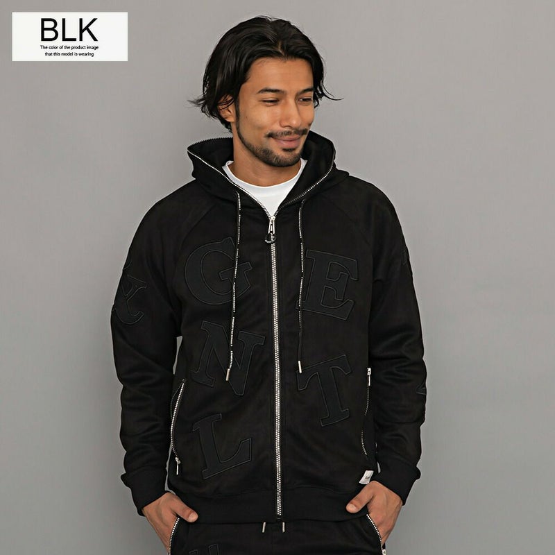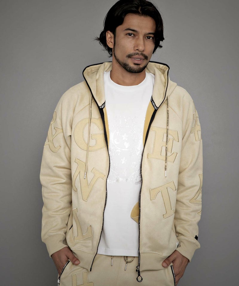 同素材のロゴワッペンを貼り付けし、ラインストーンZIPを採用した高級感あるジップアップパーカー。