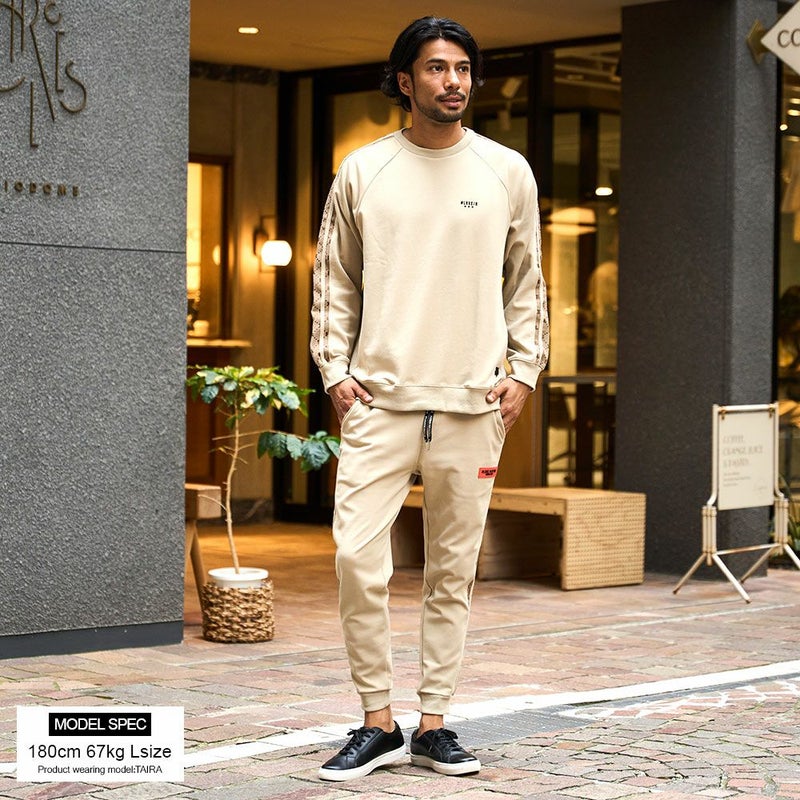 同素材のトレーナーと合わせてセットアップでの着用がオススメです。