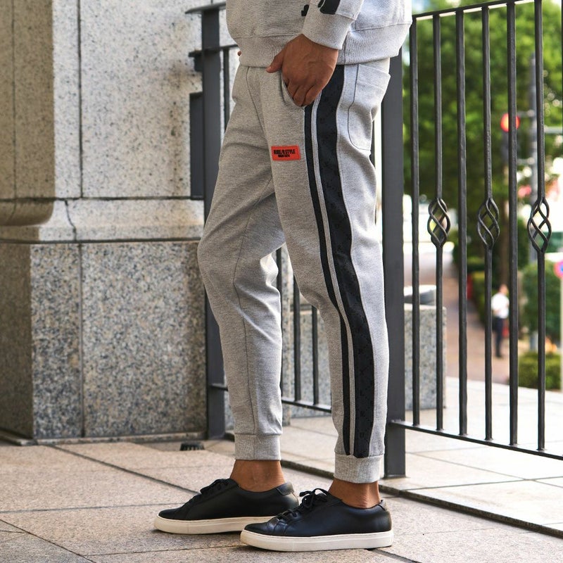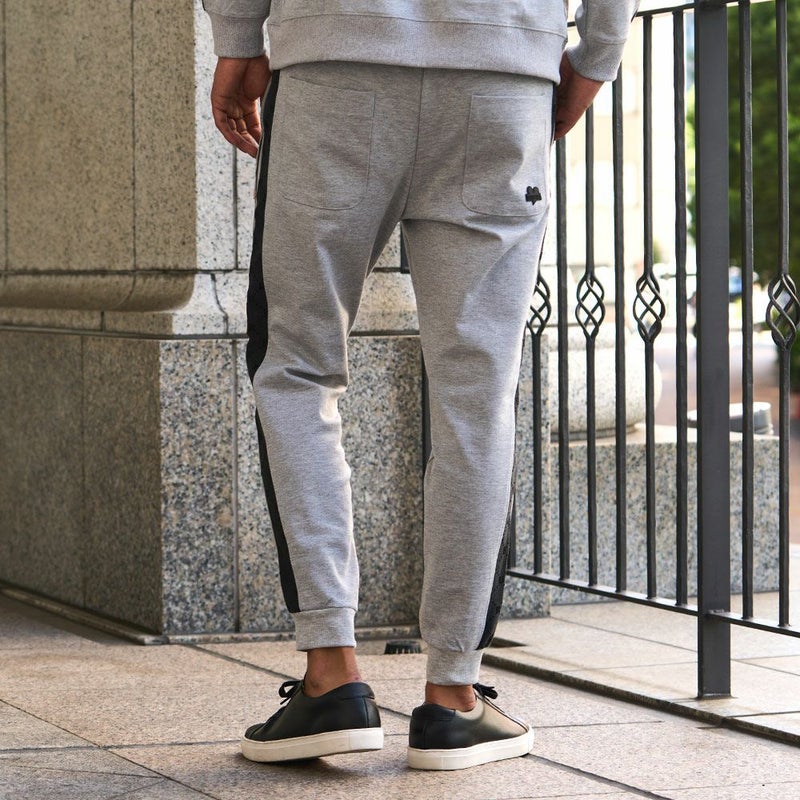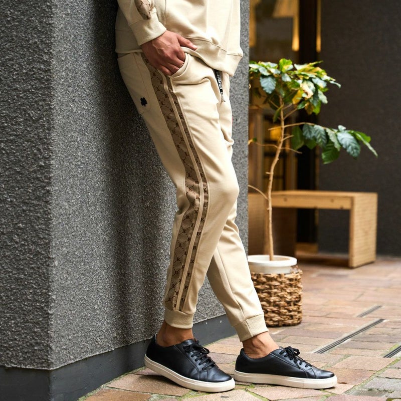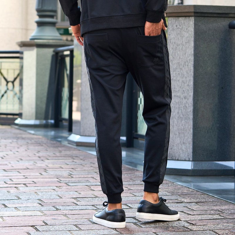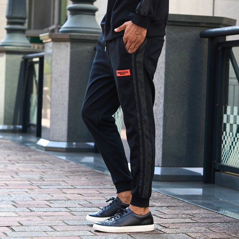 ロゴをジャガード織りで表現されたラインテープを袖部分に施した高級感あるジョガーパンツ。