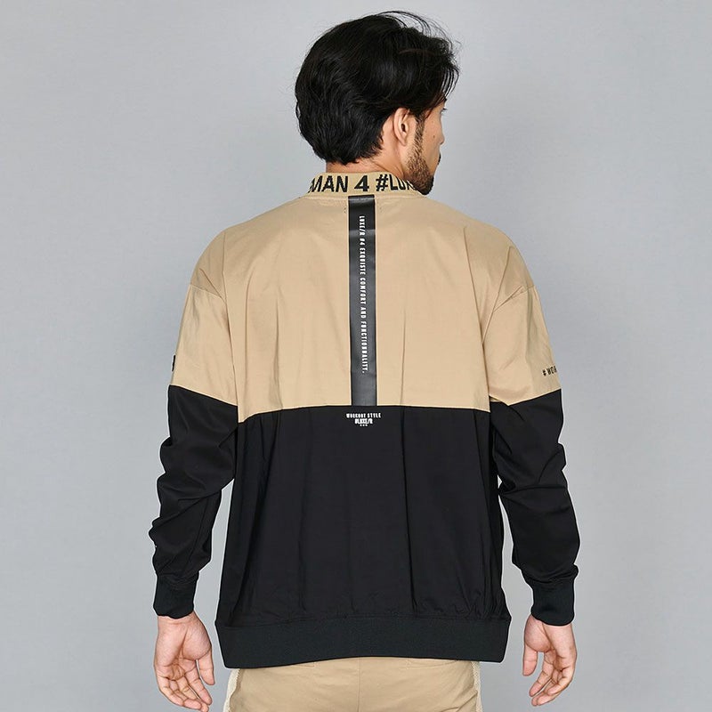 ストレッチの効いた布帛素材を使用したトレーナー。