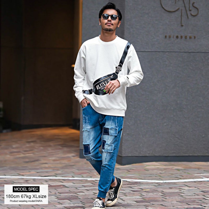 フロントに大きく施されたリアルウェストポーチがインパクト抜群のトレーナー。