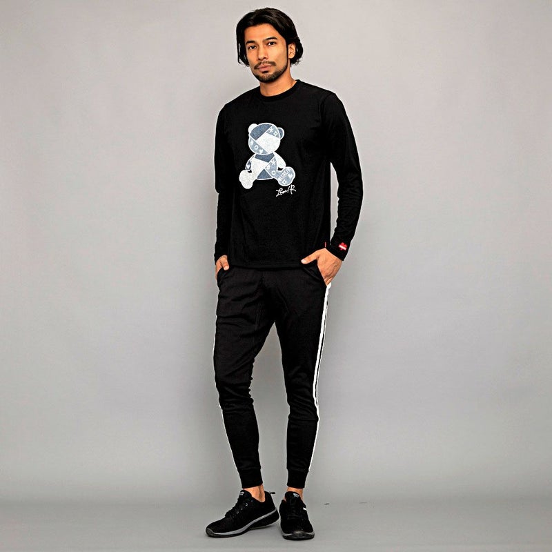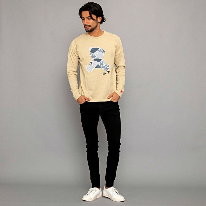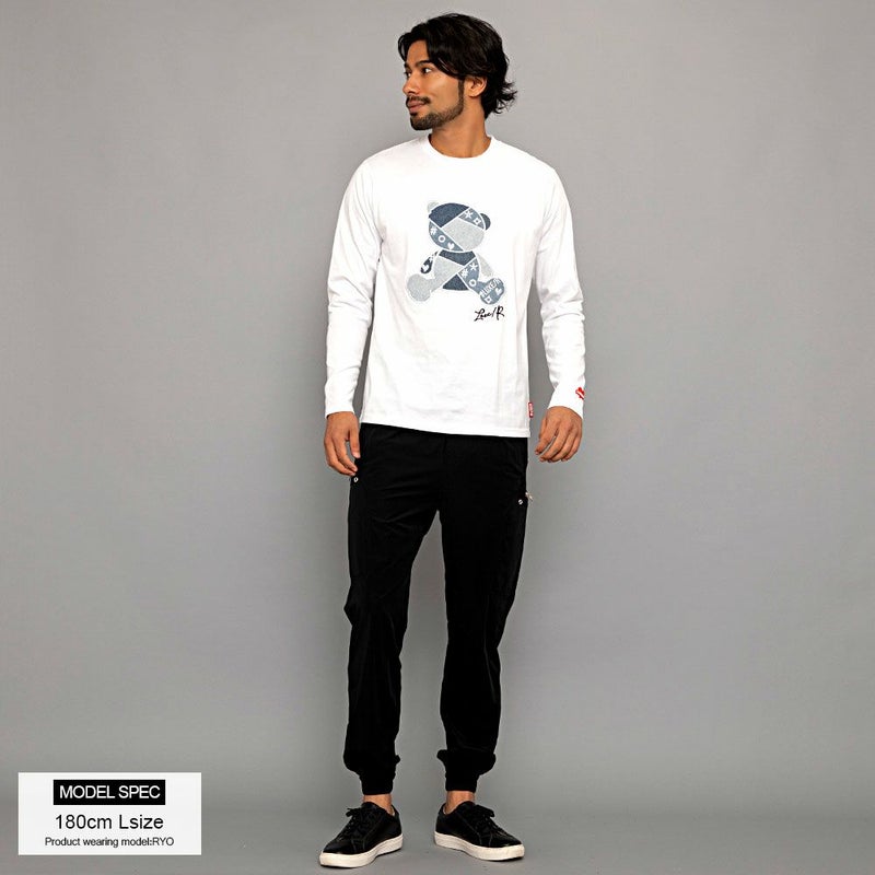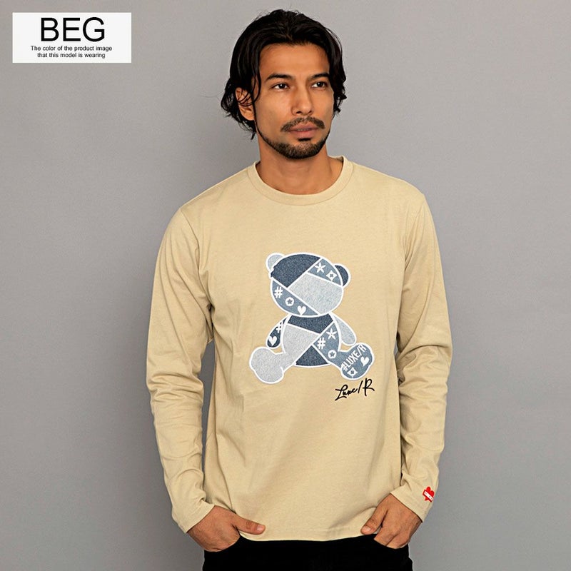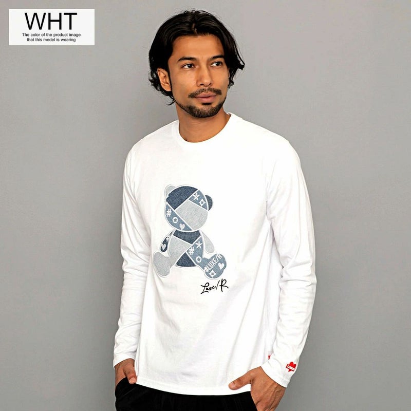 デニムでクマモチーフのアップリケを施した存在感抜群のロンTEE。