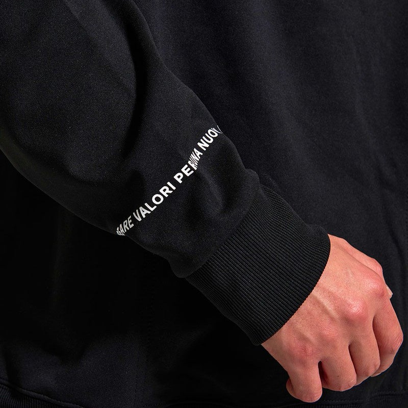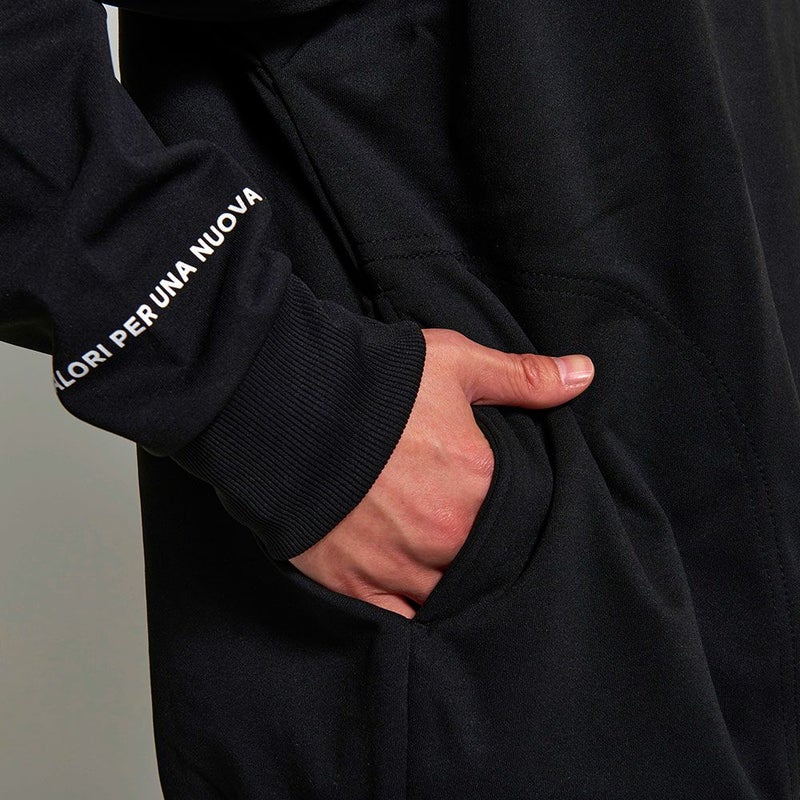 クッション性がありシワになりにくい特徴を持つダンボールニットを使用したプルオーバーパーカー。