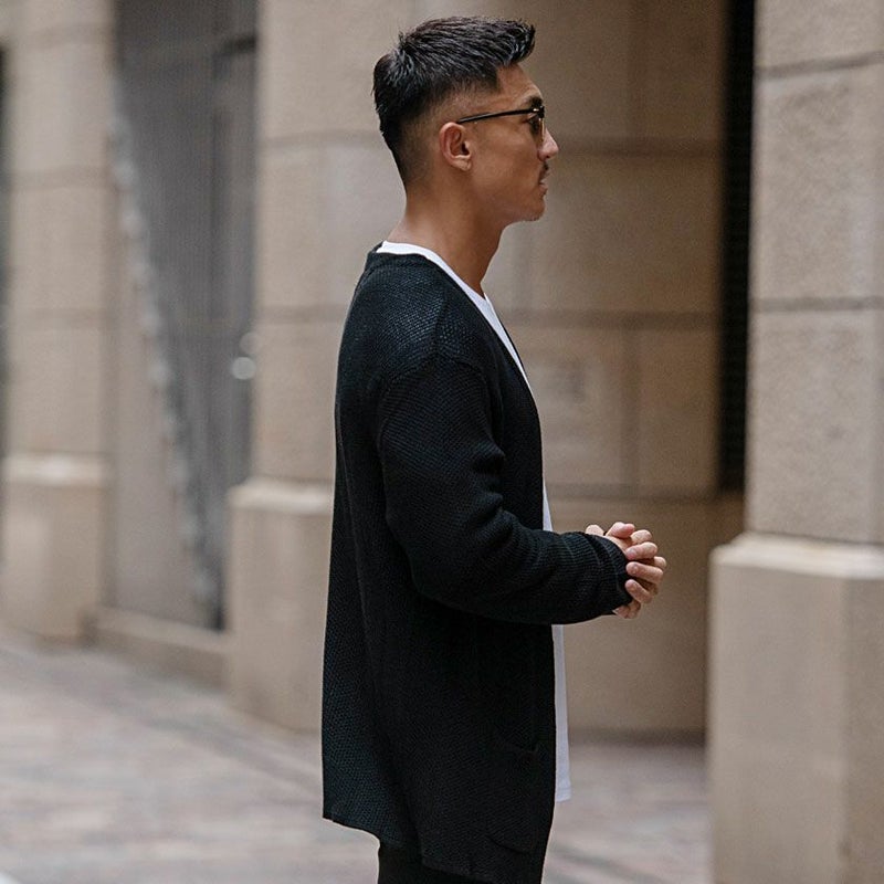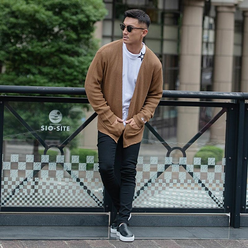 シンプルなボタンレスカーディガン。