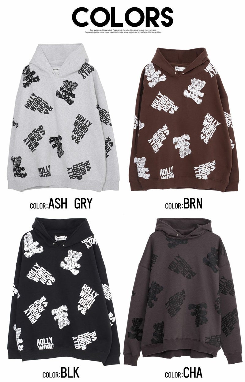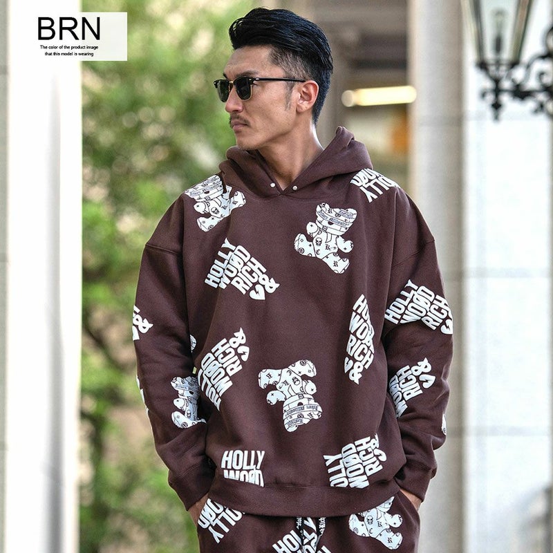 BITTER STORE(ビターストア)にHollywood rich.&【ハリウッドリッチドットアンド】裏起毛総柄プルオーバー長袖パーカーが入荷しました。