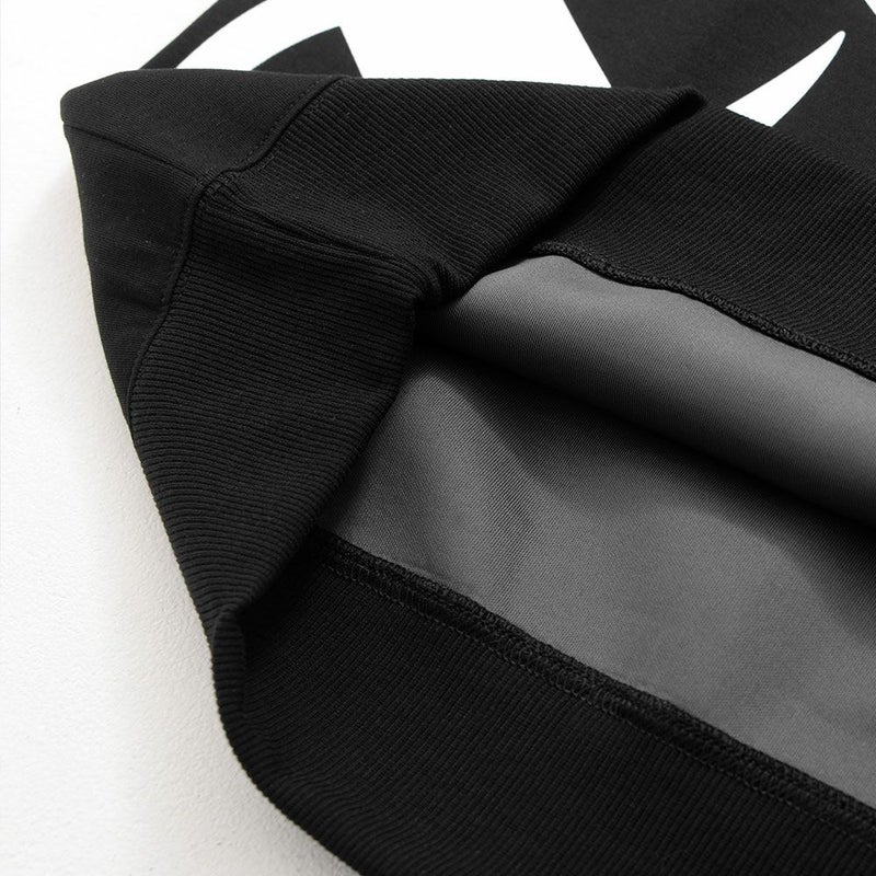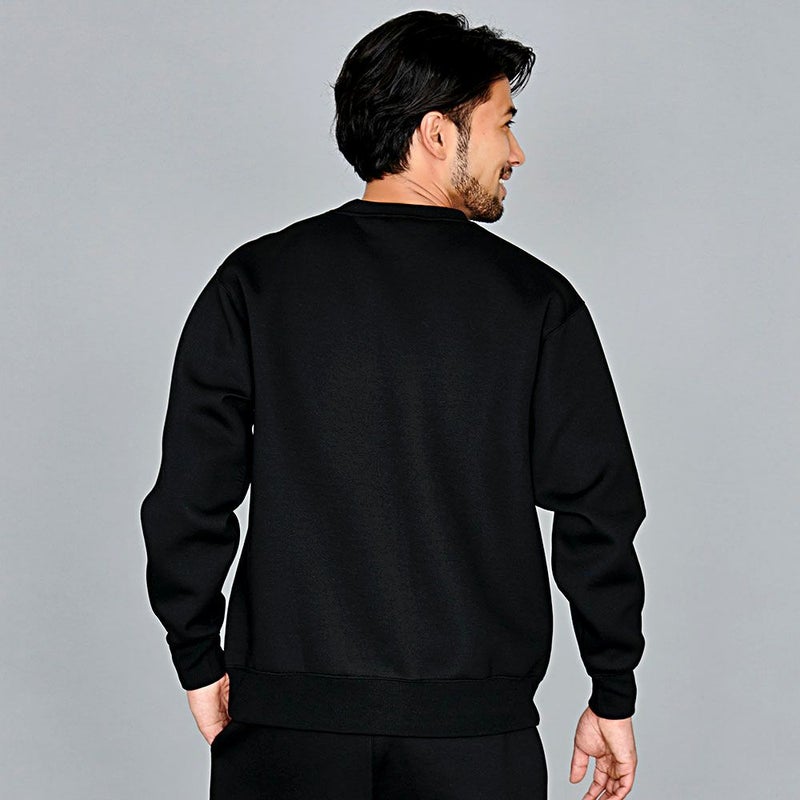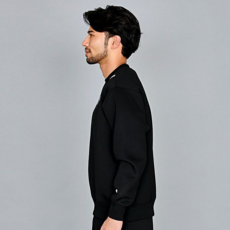 ポリエステルにナイロンとポリウレタンをブレンドすることで軽量性とストレッチ性を高め、裏面を起毛することで保温性にも優れた生地を使用したトレーナー。