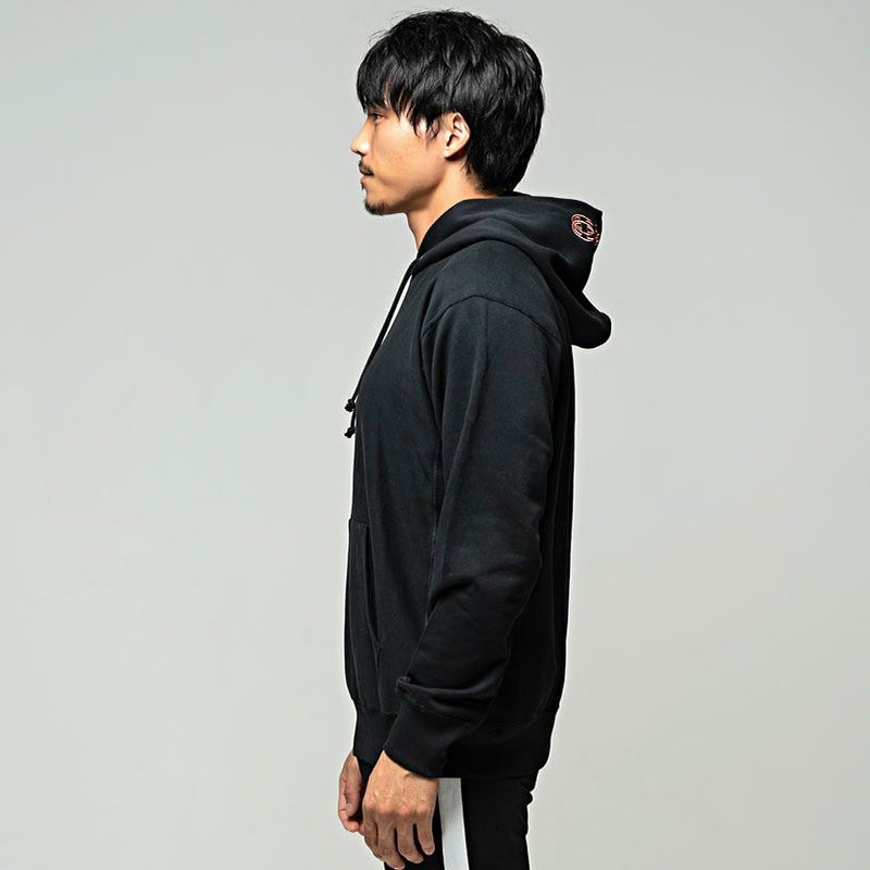 フロントにはインパクトあるブランドロゴ刺繍をデザイン、左袖にはワンポイントとしてCマークを配置。