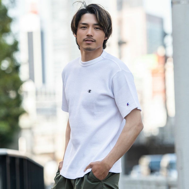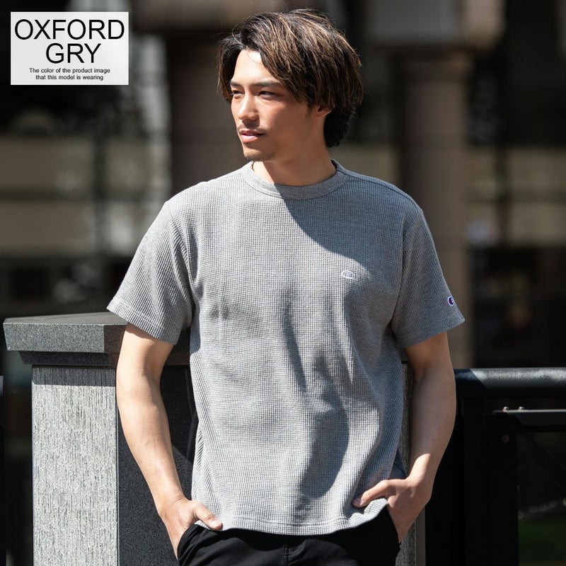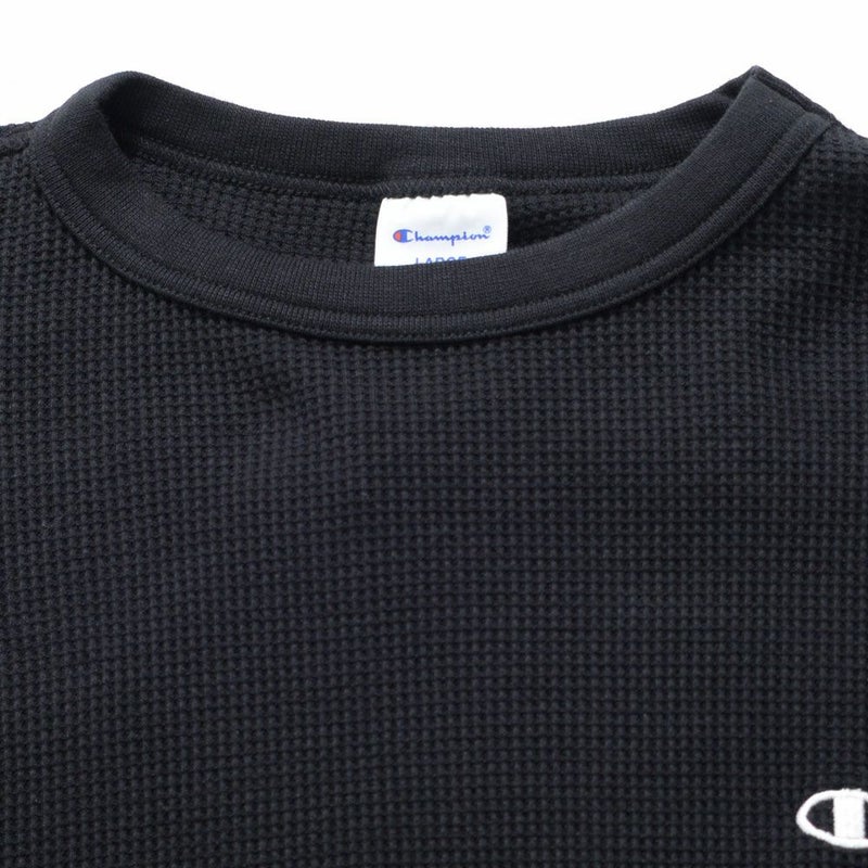 オーセンティックアメリカンアスレチックウェアのChampion(チャンピオン)らしいバインダーネック仕様もポイント。