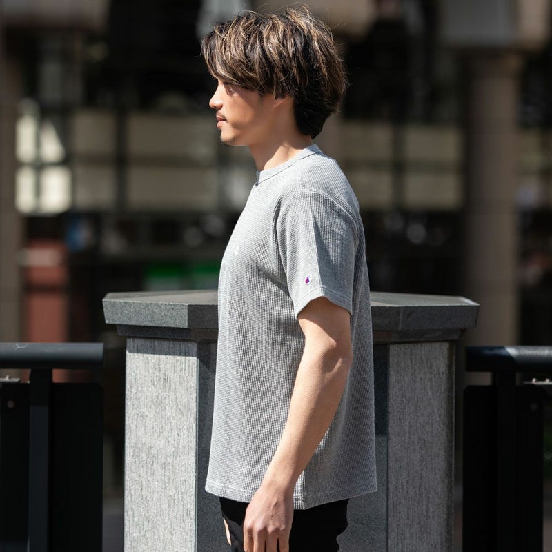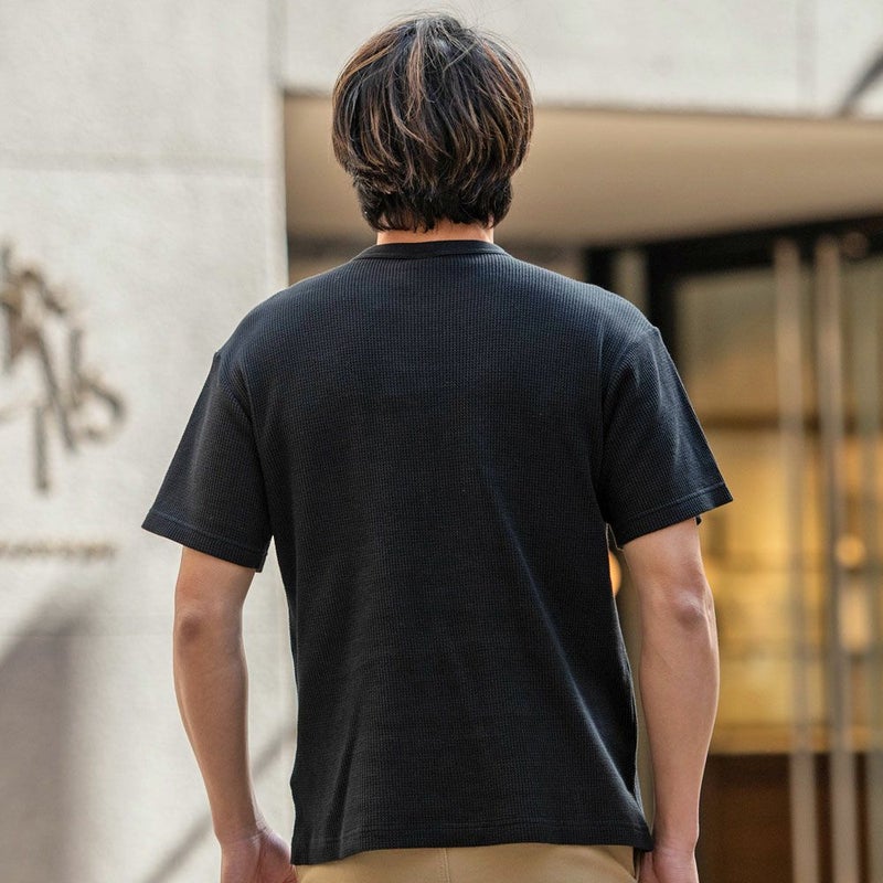 環境に配慮して生産されたサステナブルなアメリカ綿とリサイクルポリエステルをブレンドした、ワッフル素材のショートスリーブTシャツです。