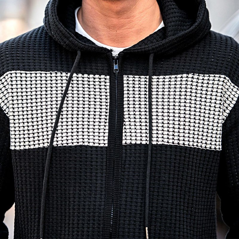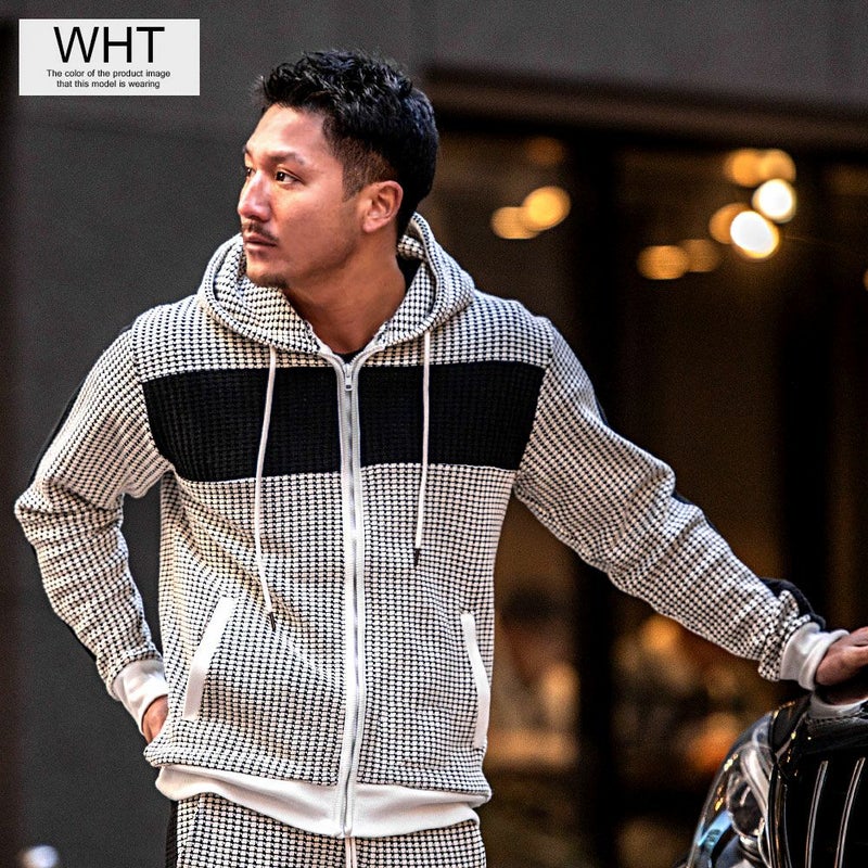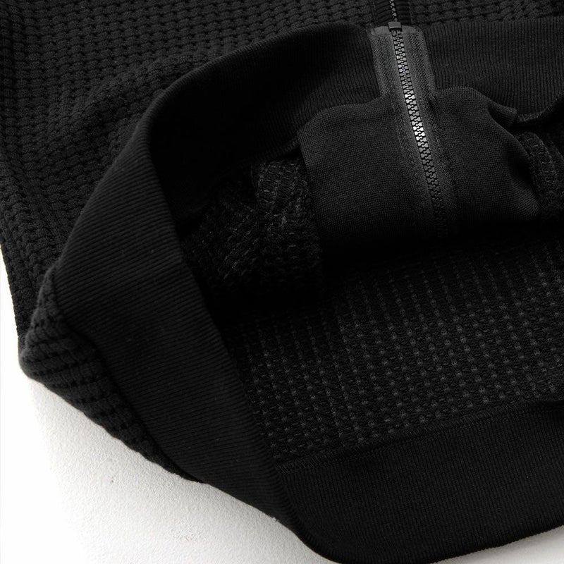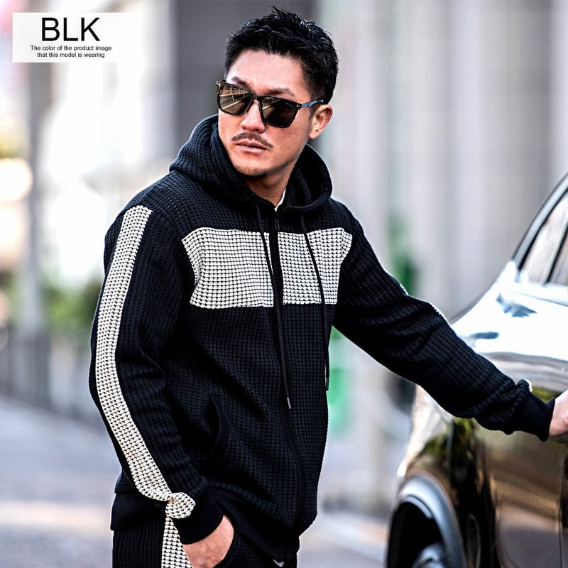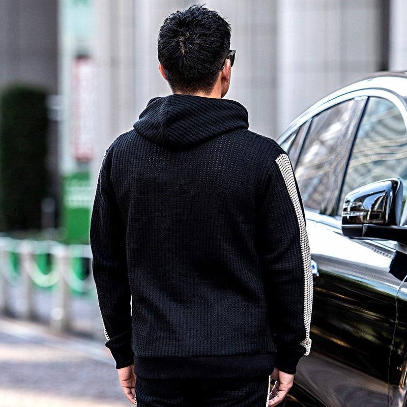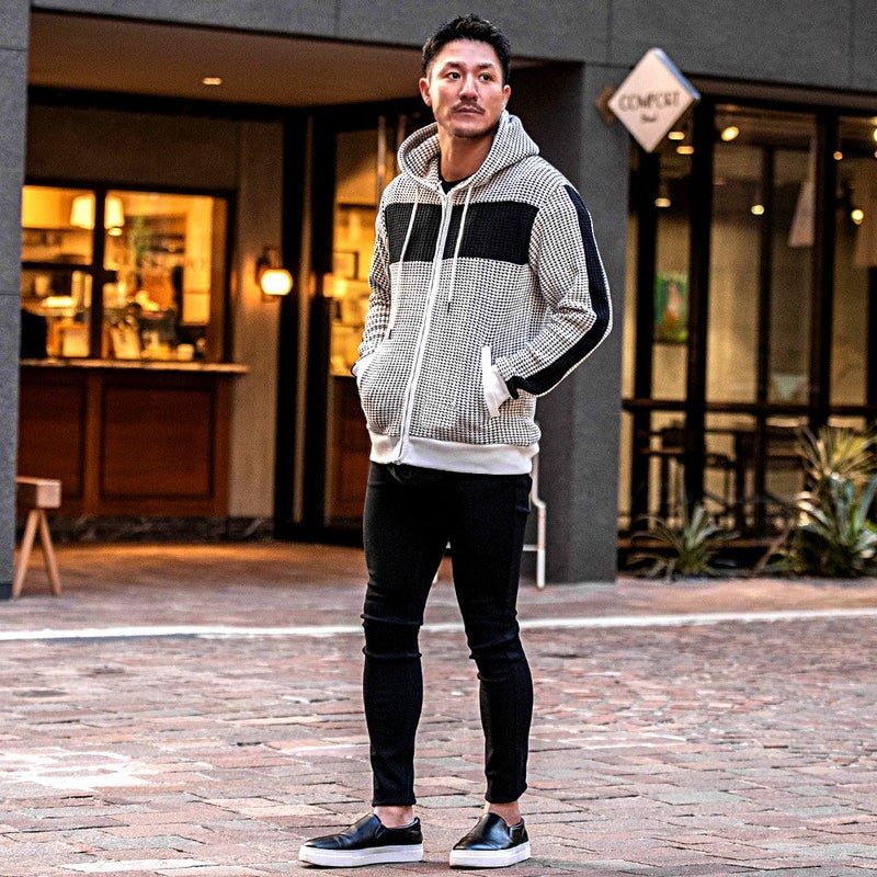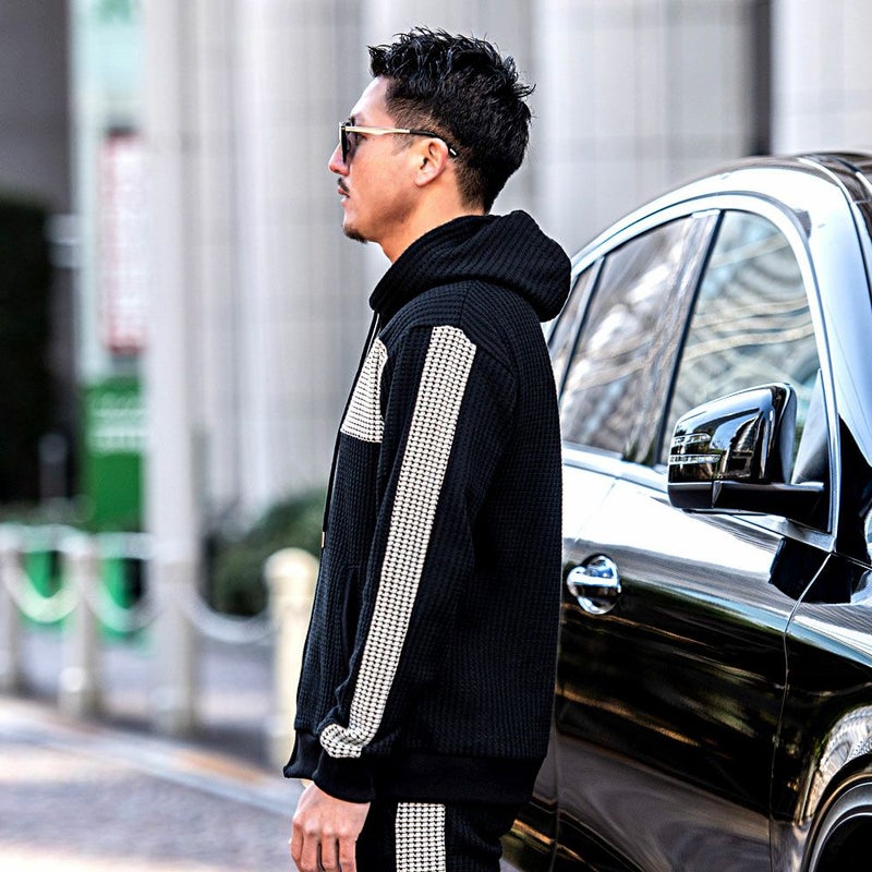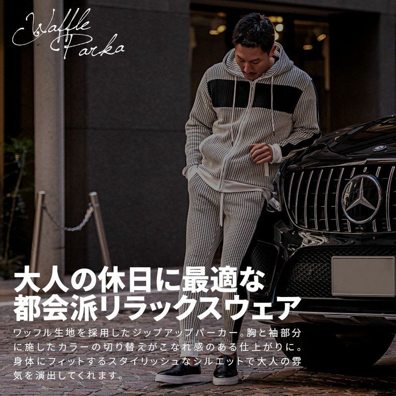 しっかりとした厚みと凹凸のある表面が特徴のワッフル生地を採用したジップアップパーカー。