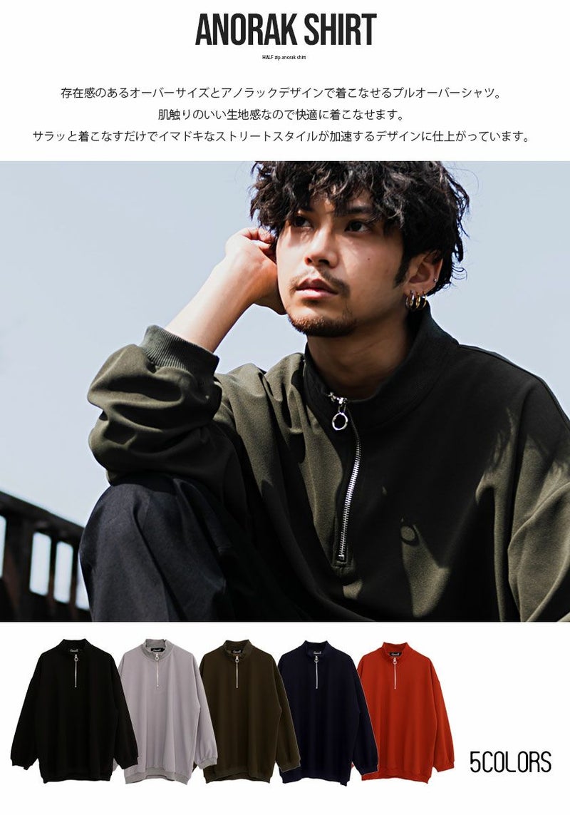 ビッグシルエットでイマドキな存在感のあるオーバーサイズとアノラックデザインで着こなせるプルオーバーシャツ。