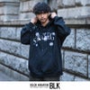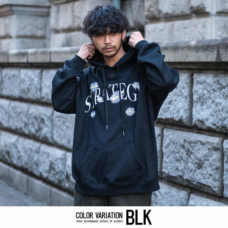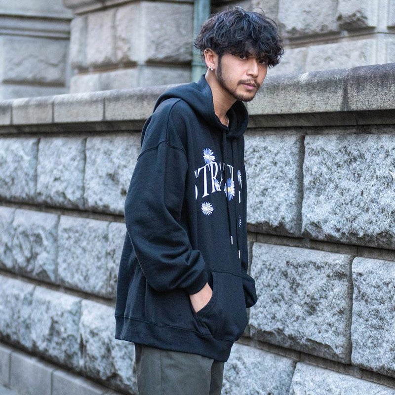 アーチロゴの周りにフラワー刺繍を施したインパクト抜群なスエットプルパーカー。