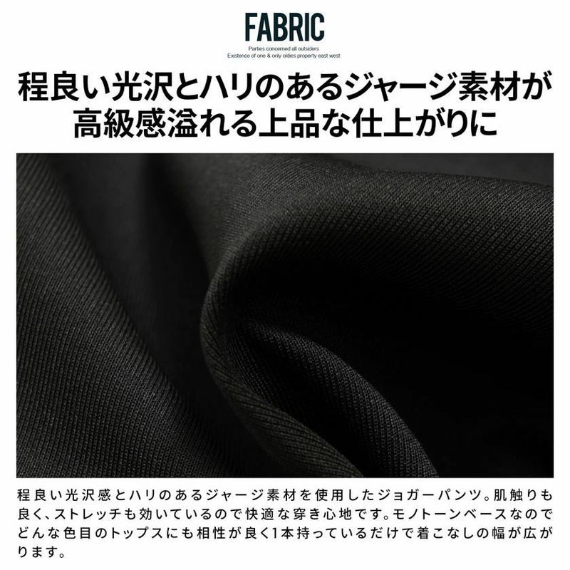 程良い光沢のあるジャージ素材を使用したジョガーパンツ。