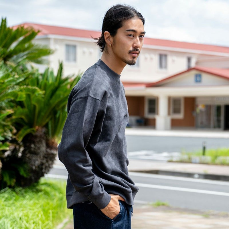 ポンチスウェード素材を使用したクルーネックトレーナー。