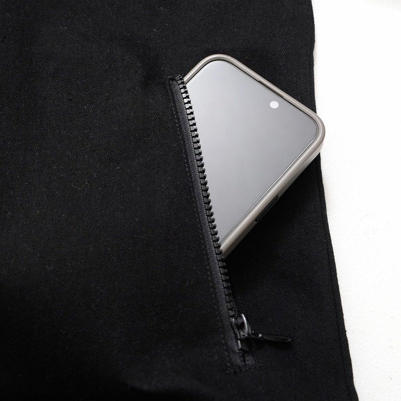 両サイドのポケットにはファスナーを取り付けることで小物の持ち運びにも便利です。