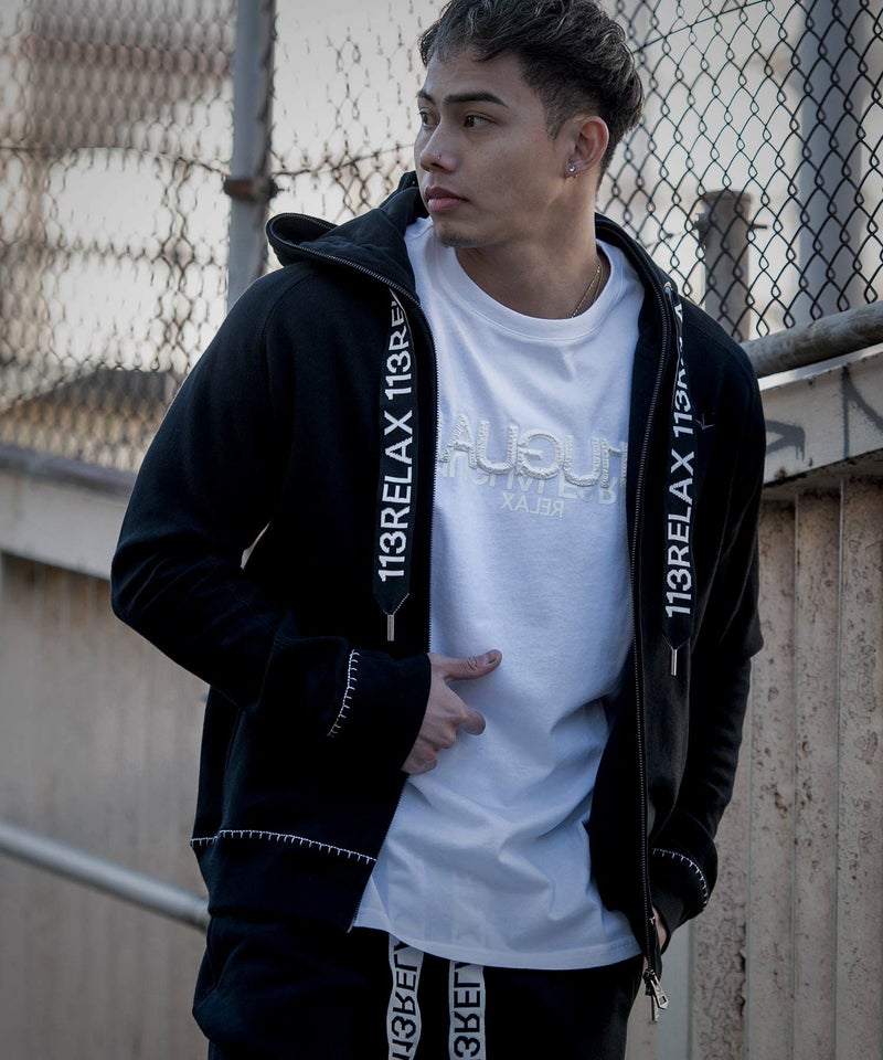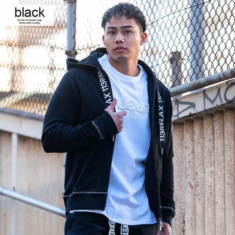 ブランドロゴを施した太めのスピンドルがキャッチーなジップアップパーカー。