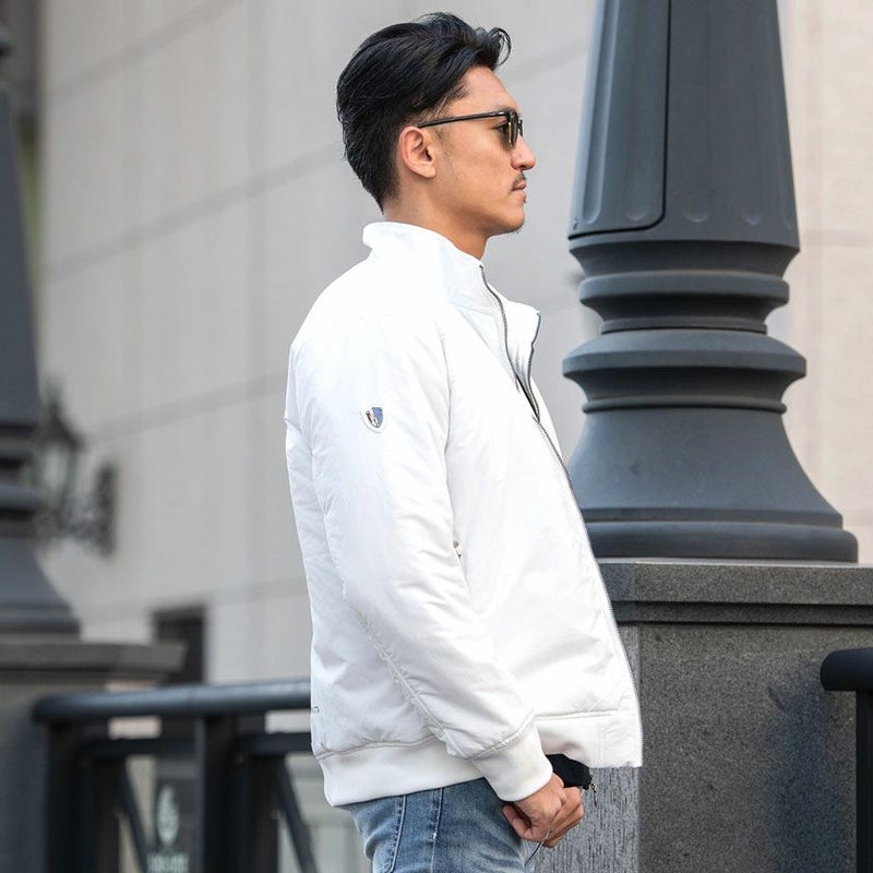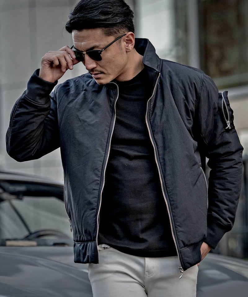 中綿入りで暖かく保温性にも優れているうえに、ポリエステルを使用した軽い着心地が魅力の中綿ブルゾン。