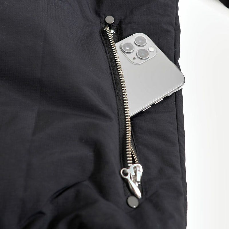 両サイドのポケットにはジップファスナーを採用。
