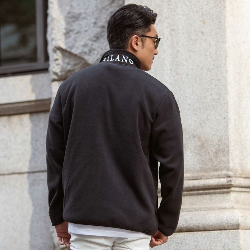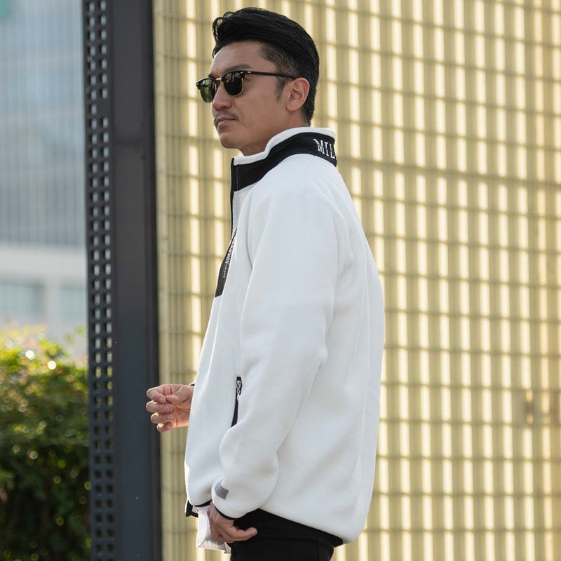 着心地のいいフリース素材を使用した長袖ブルゾン。