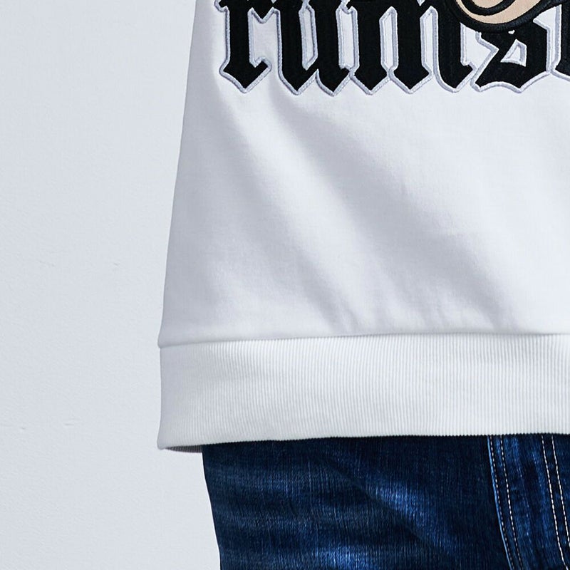 フロントに大きくデザインされたサングラスをかけたクールなクベアのアップリケが目を引く主役級の一枚。