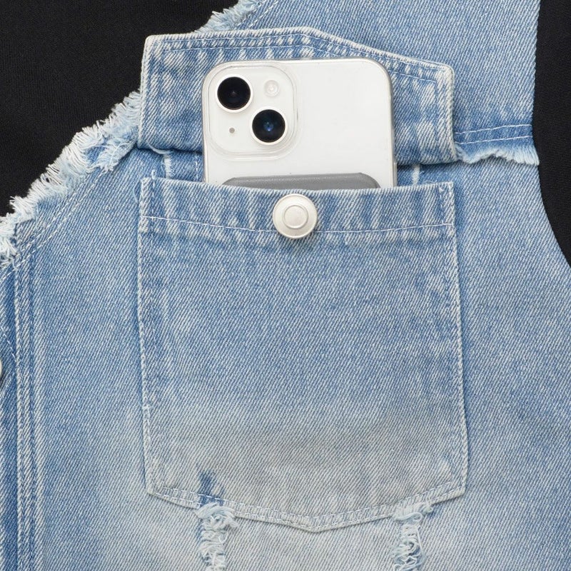 胸のフラップポケットやダメージ加工、フリンジを取り入れたディテールが、他にはない個性を演出します。