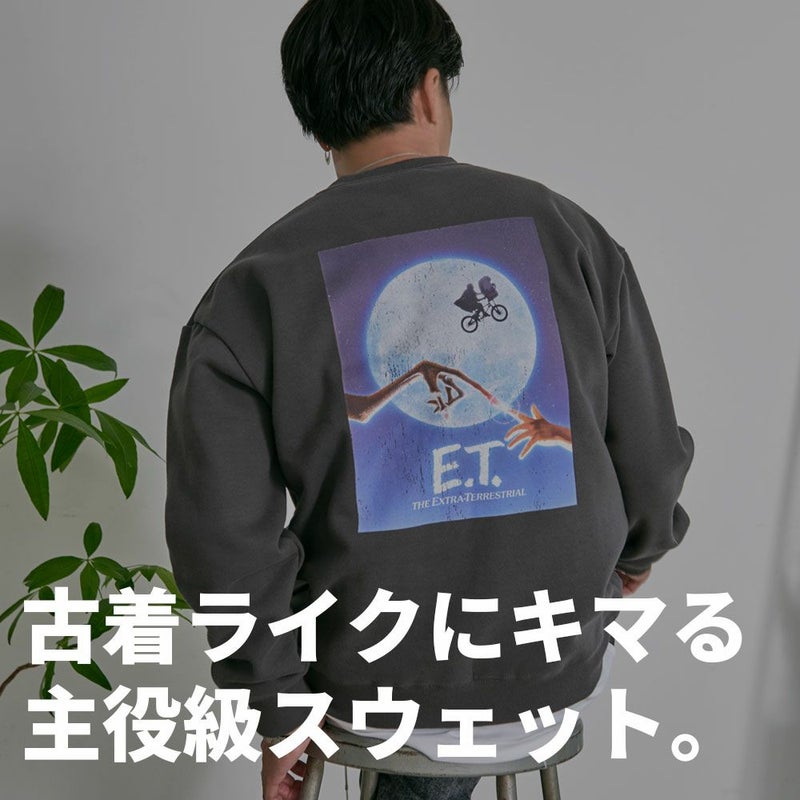 背面のプリントデザインは映画『E.T.(イーティー原題: E.T. The Extra-Terrestrial)』のポスターアートを用いたヴィンテージライクなグラフィック。
