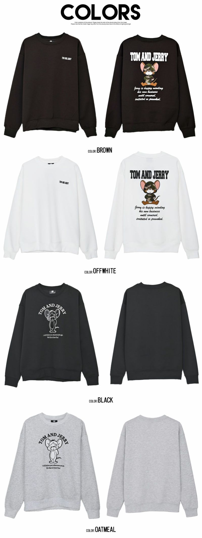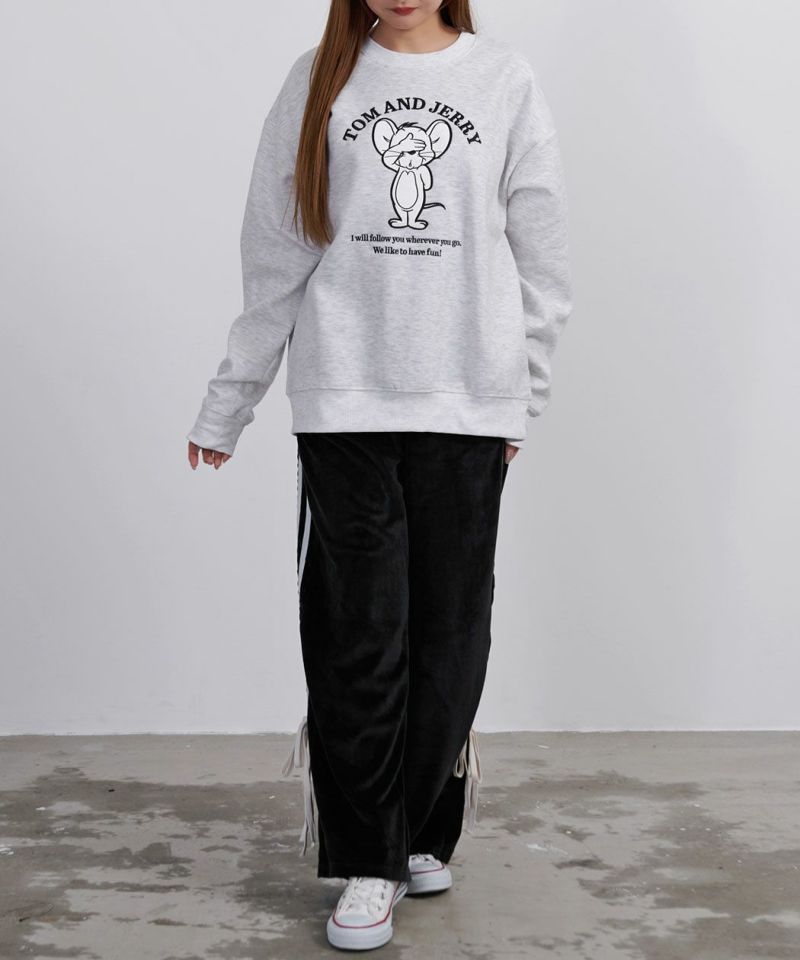 TOM&JERRY(トムとジェリー)デザインを落とし込んだ、クルーネックタイプの長袖スウェットシャツ。