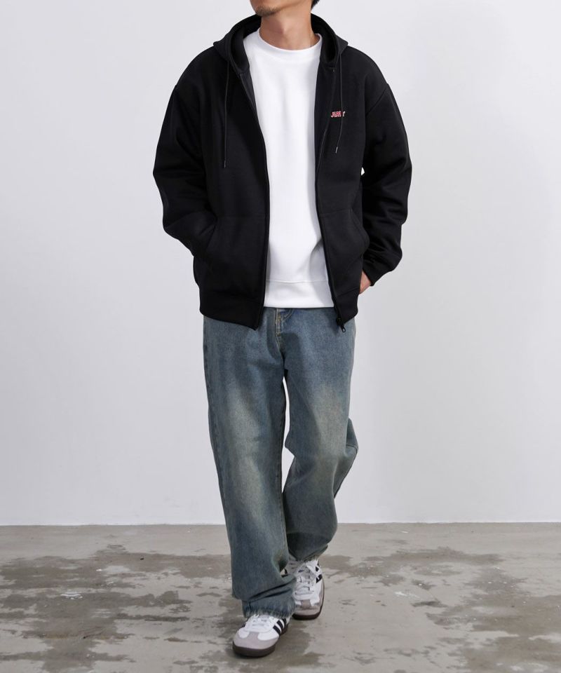 シンプルなカラー展開で、コーディネートに取り入れやすいジップパーカーです。